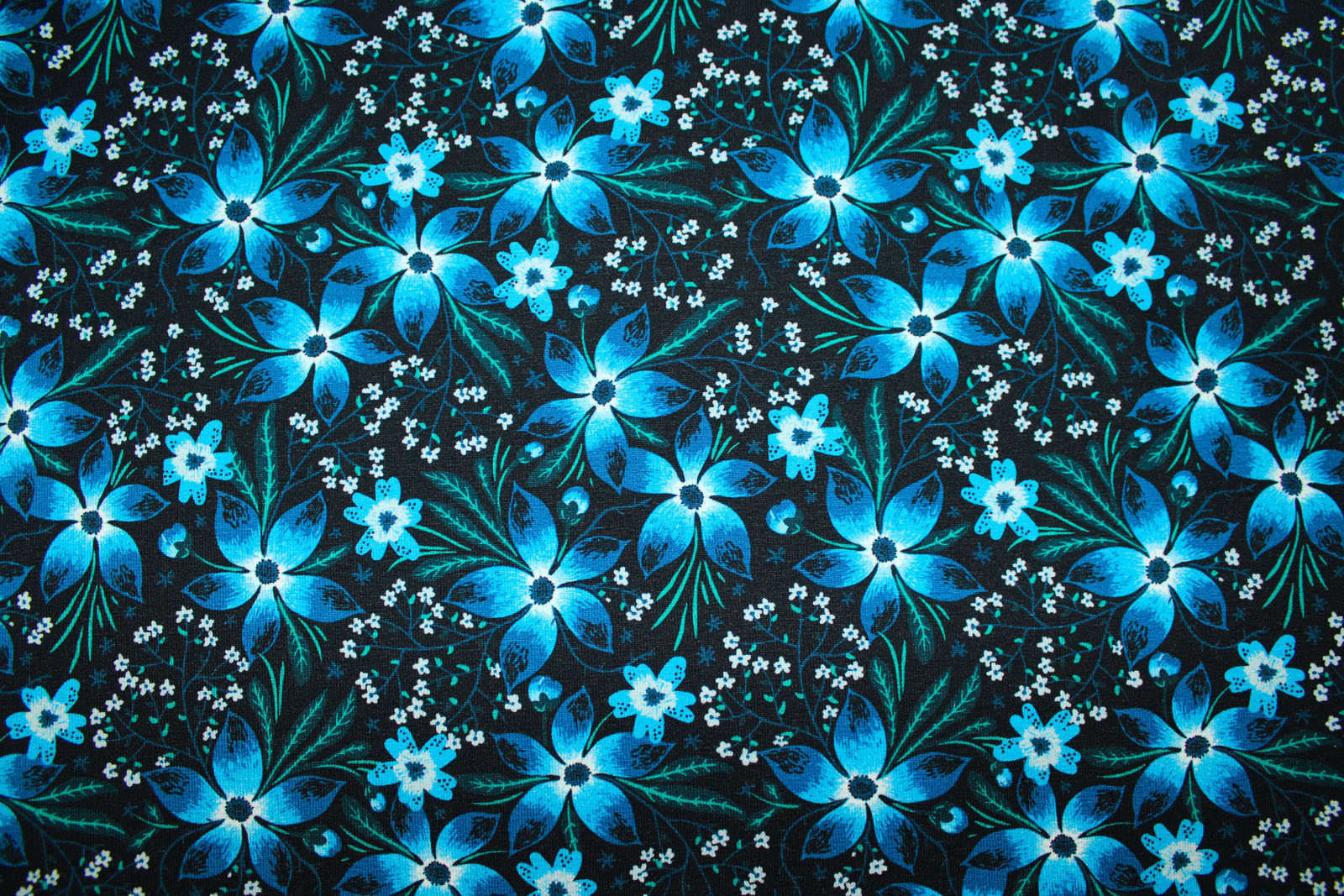 Hochwertiger, sommerlicher Jersey mit Blumen. Der Untergrund ist mitternachtsblau. Ideal geeignet für Shirts, Beanies, Pumphosen und co. Andere Stoffe oder Designbeispiele auf weiteren Fotos gehören nicht zu diesem Angebot, sondern dienen der Inspiration.