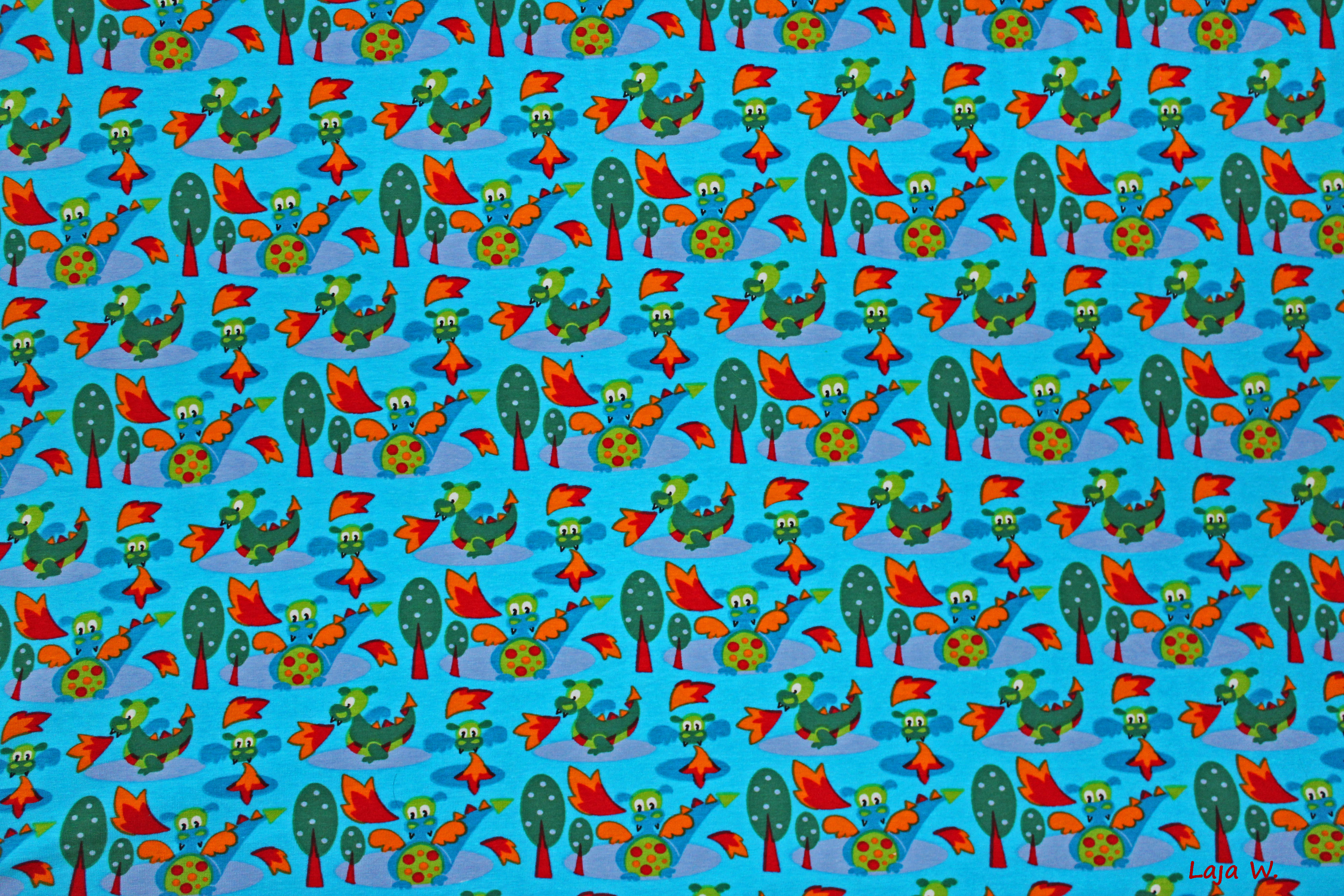 usw.Hier biete ich Euch einen tollen Jersey mit kleinen Drachen auf türkisfarbenem Untergrund an. Genau das Richtige für kleine Jungs.