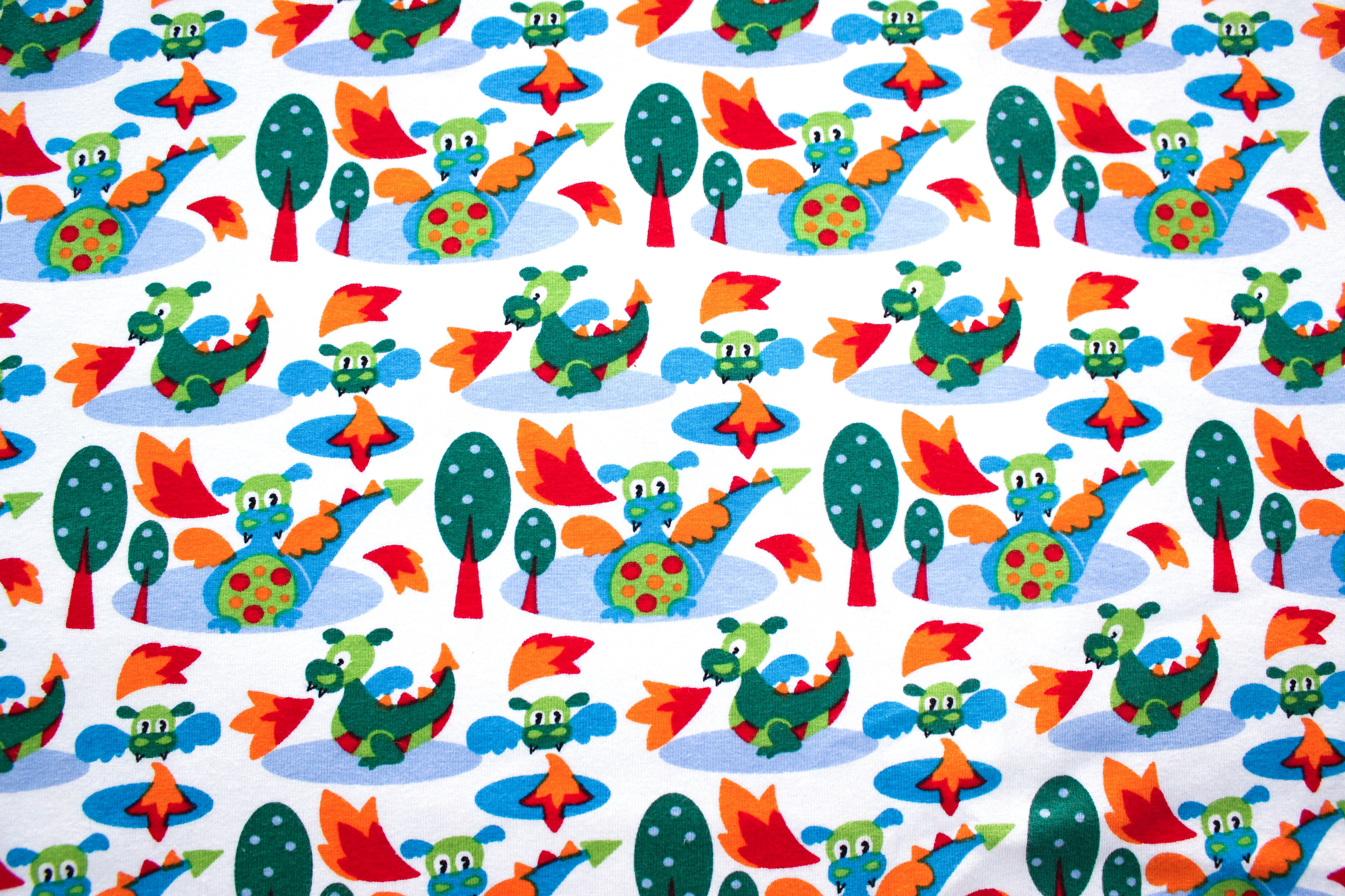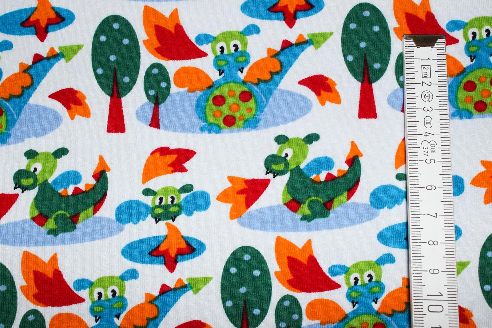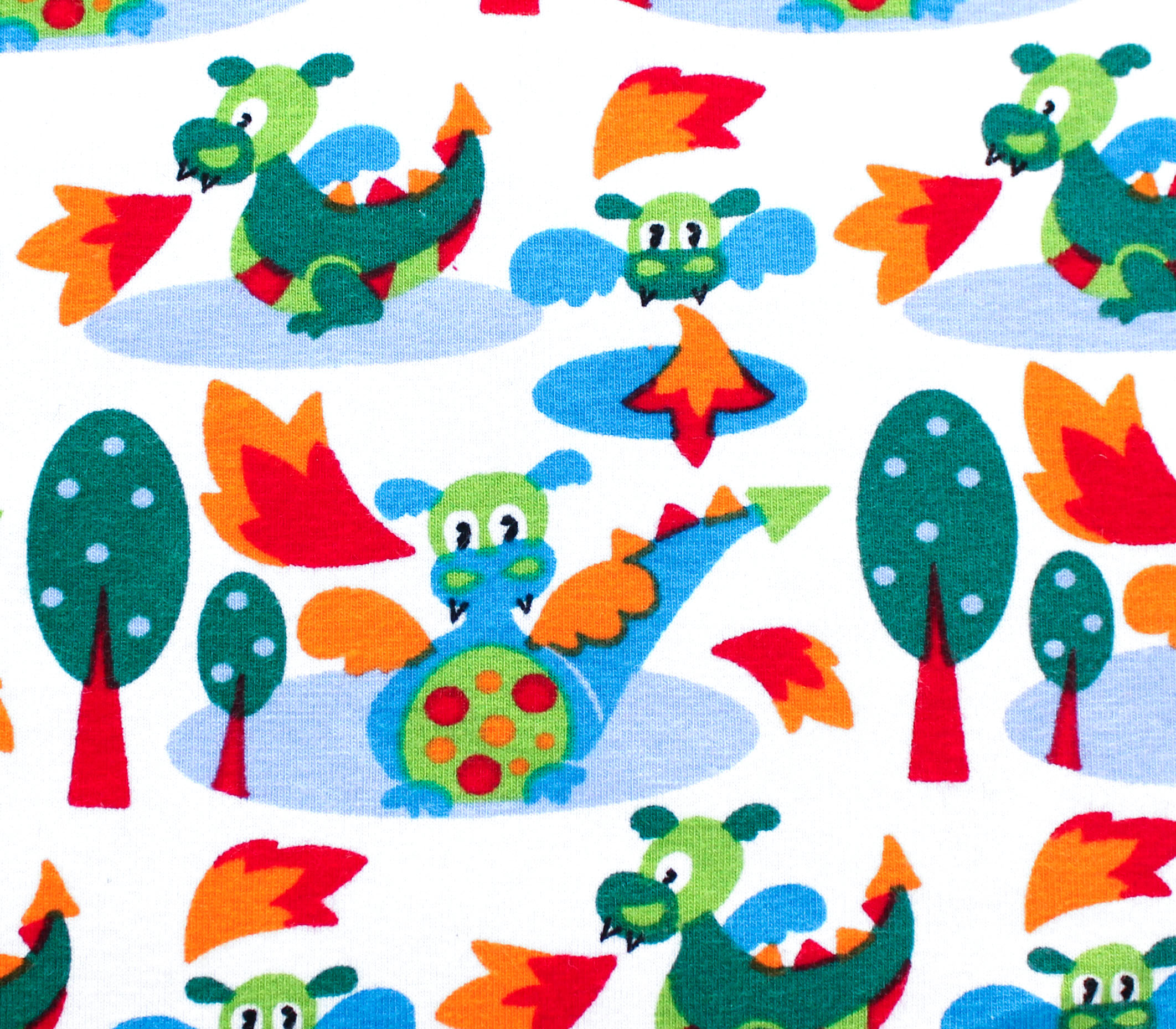 Hier biete ich Euch einen tollen Jersey mit kleinen Drachen auf weißem Untergrund an. Genau das Richtige für kleine Jungs.