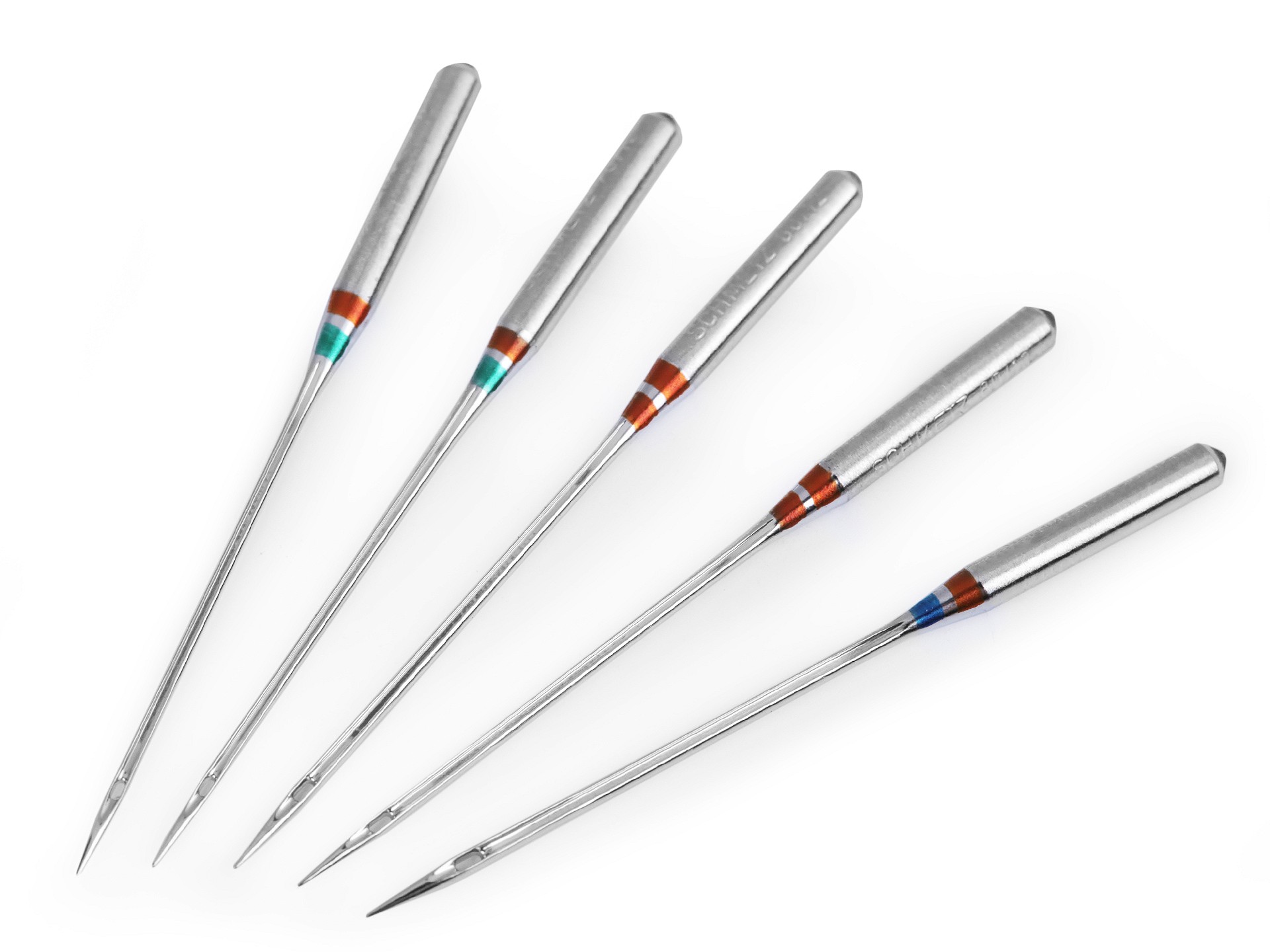 Nadeln mit Kugelspitze (H-SUK) sind ideal für Strickstoffe, Jersey, Trikotage und andere elastische Stoffe. Sie sind geeignet für Hausnähmaschinen und haben Flachkolben.