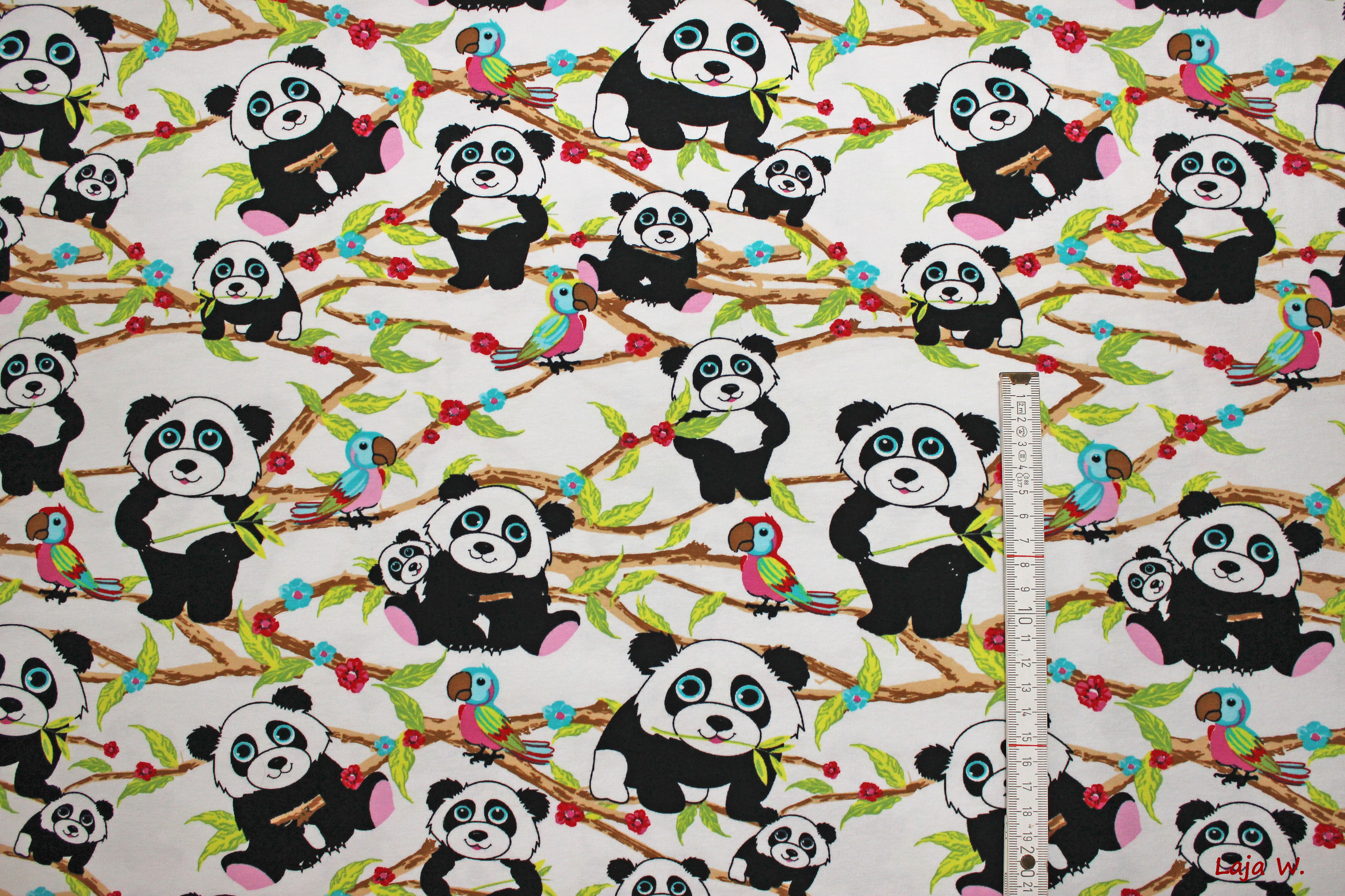 Hier biete ich Euch ganz süßen Jersey der Firma Stenzo mit Padabären und Papageien an. Der Untergrund ist weiß.