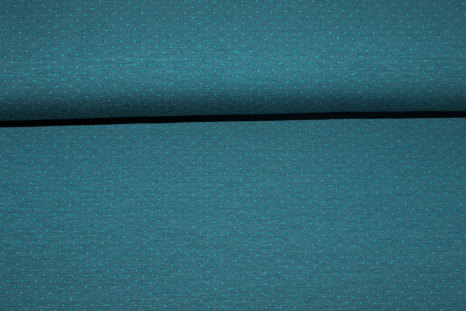 usw.Stretchjersey von Stenzo in dunklem petrol mit Mini- Punkten (ca.1mm Durchmesser) in hellpetrol