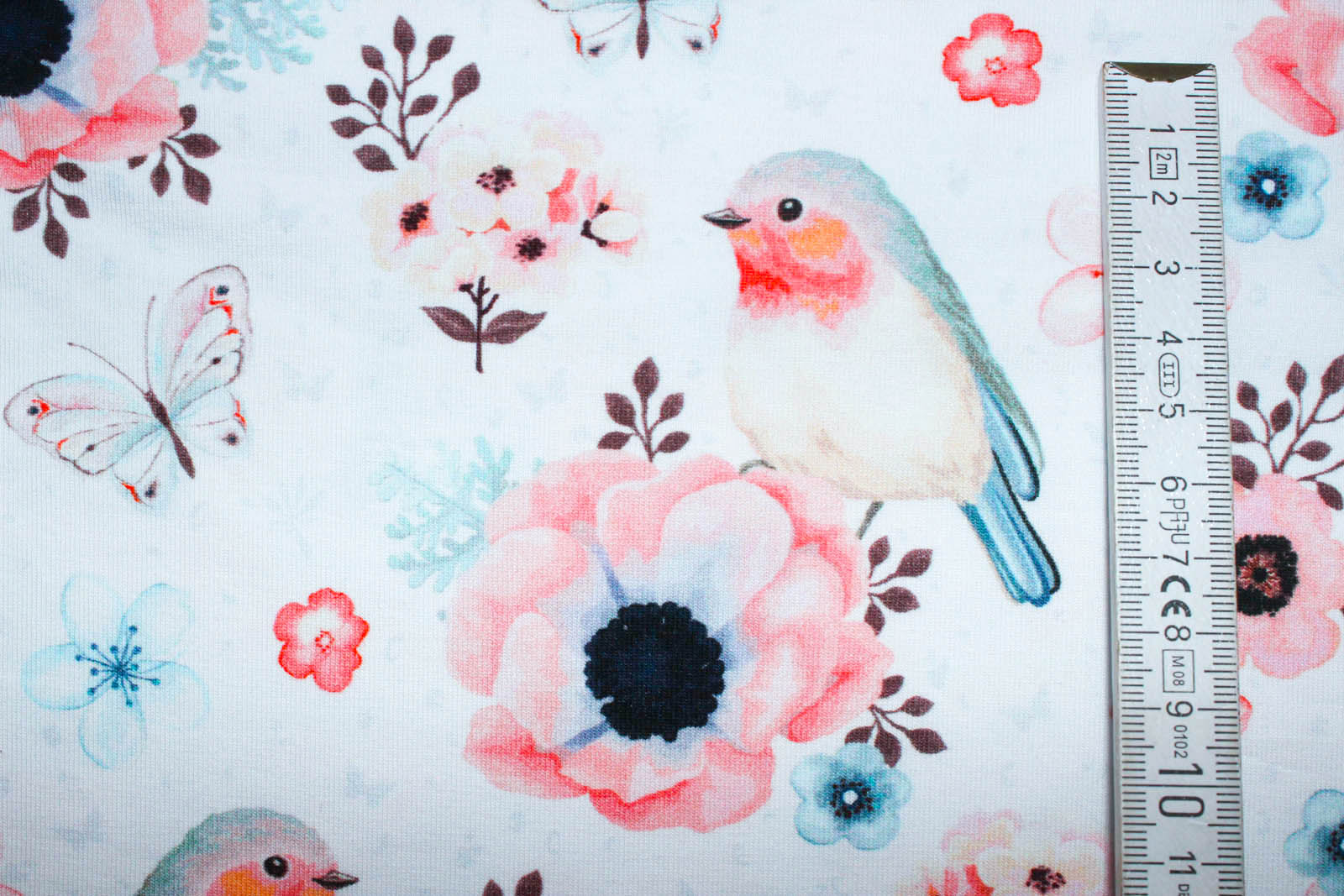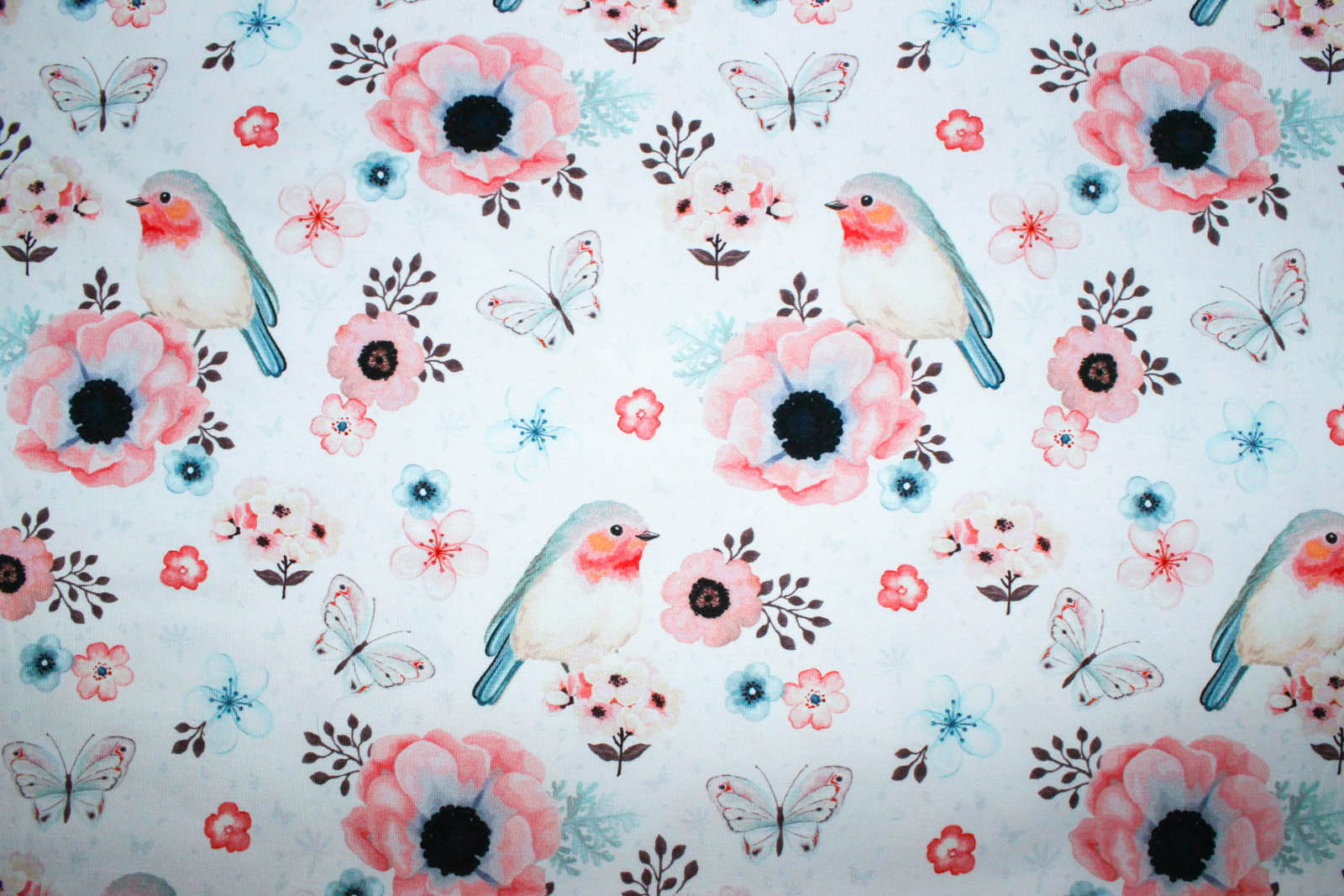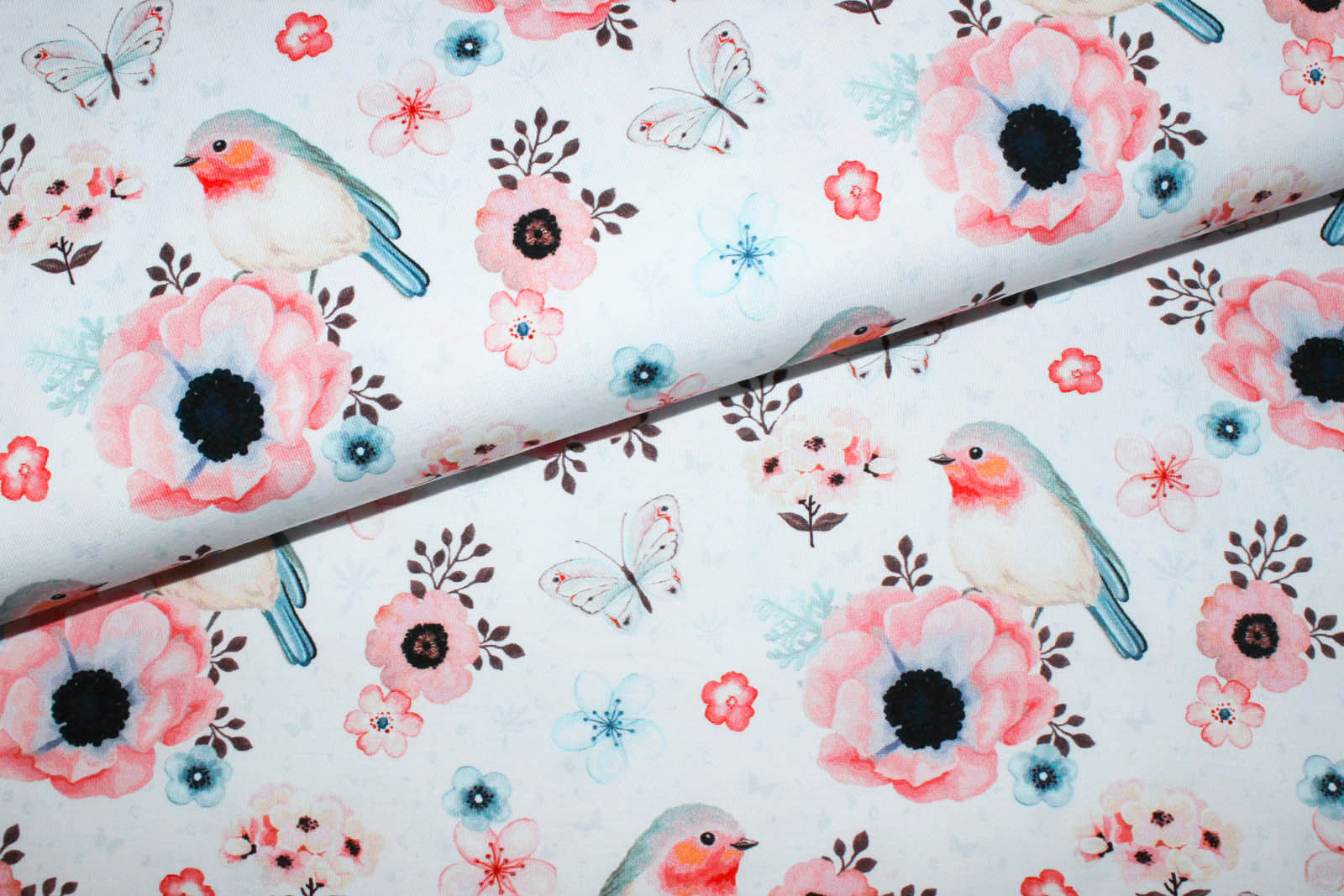 Hier biete ich Euch einen absolut traumhaften hochwertigen Jersey mit süßen Rotkehlchen und Blumen von "Fräulein von Julie" an. Prima geeignet zum Nähen von Shirts, Kleidchen, Schlauchschals, Beanies, Pumphosen und co.