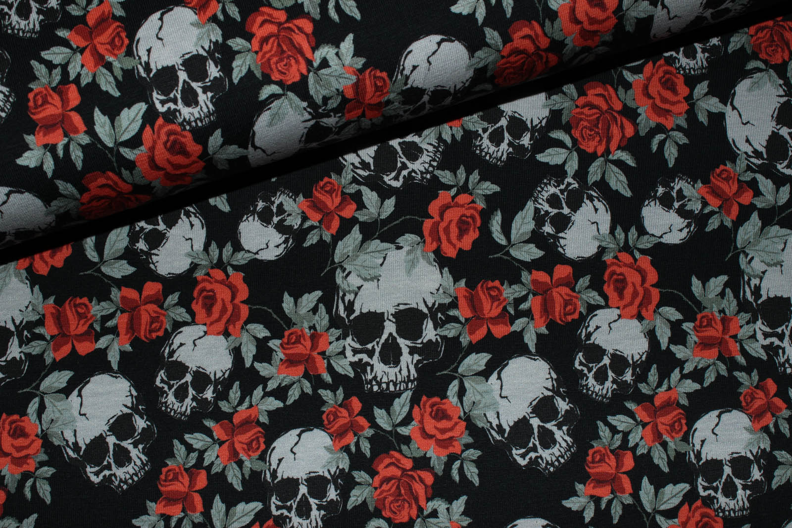 Hier biete ich Euch einen absolut trendigen und hochwertigen Jersey Sculls und Rosen von "Fräulein von Julie" an. De Prima geeignet zum Nähen von Shirts, Kleidchen, Schlauchschals, Beanies, Pumphosen und co.