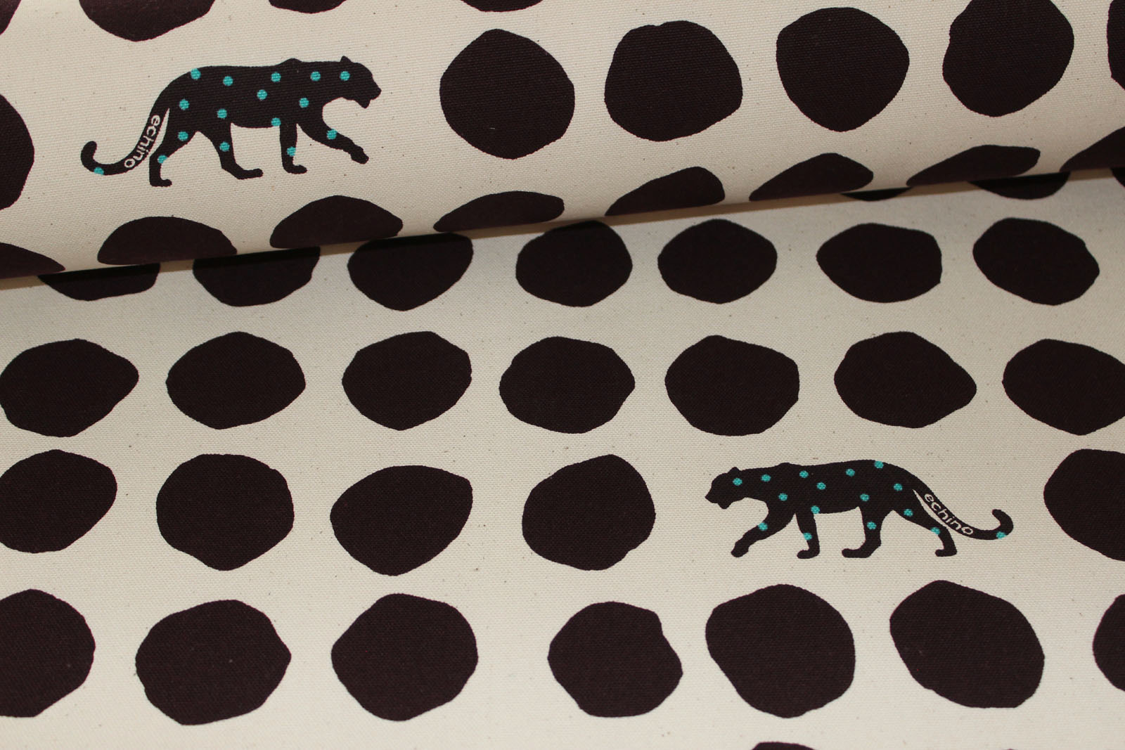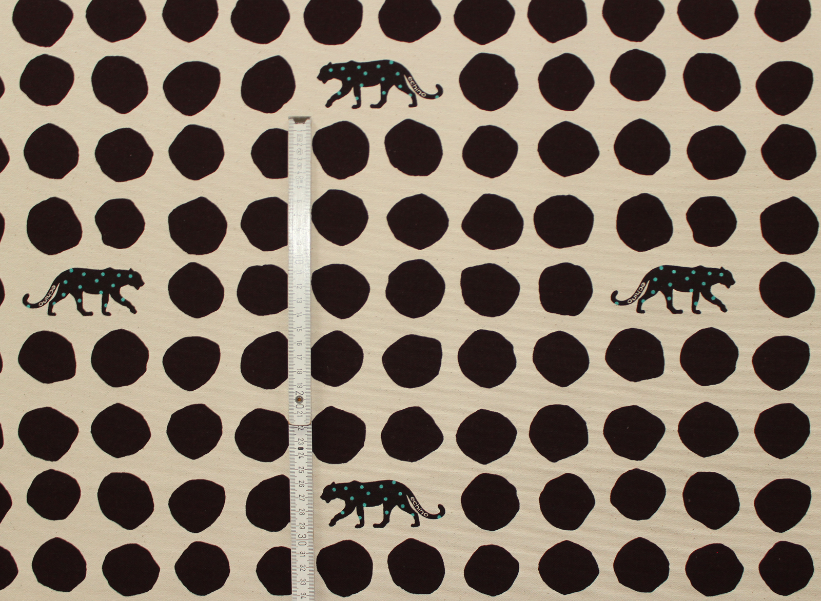 Wunderschöner fester, robuster Baumwoll- Canvas aus dem Hause Kokka, ideal für ausgefallene Taschenprojekte, Deko-Kissen oder ähnliches. Bitte unbedingt beachten, diese Serie ist vom Muster her wesentlich größer als der bereits bekannte Canvas. Die Panther haben eine Größe von ca. 9 cm x 4 cm, die Punkte einen Durchmesser von ca. 4 cm.Weitere Stoffe und ggf. genähte Objekte gehören nicht zu diesem Angebot, sondern dienen der Inspiration.