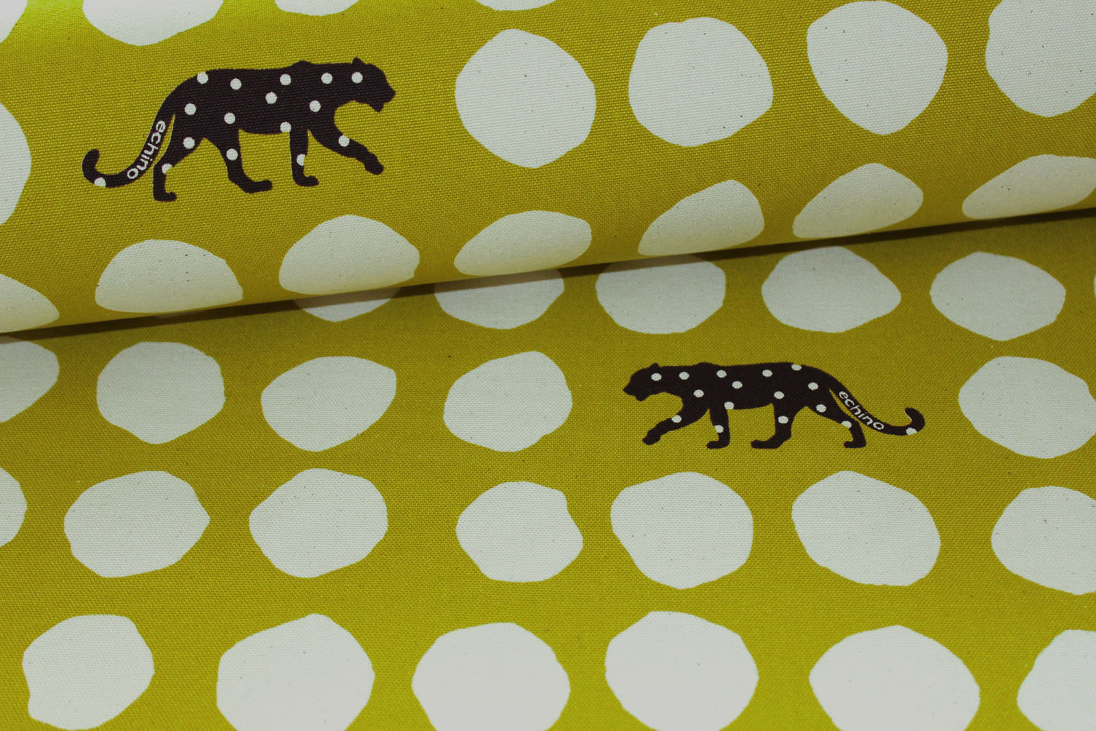 Produkt: Kokka Echino Cotton Sailcloth Heavyweight Canvas Panther grüngelb/natur