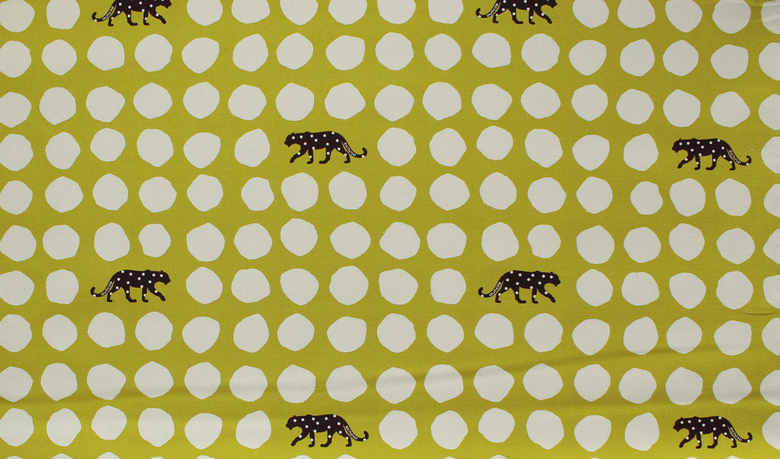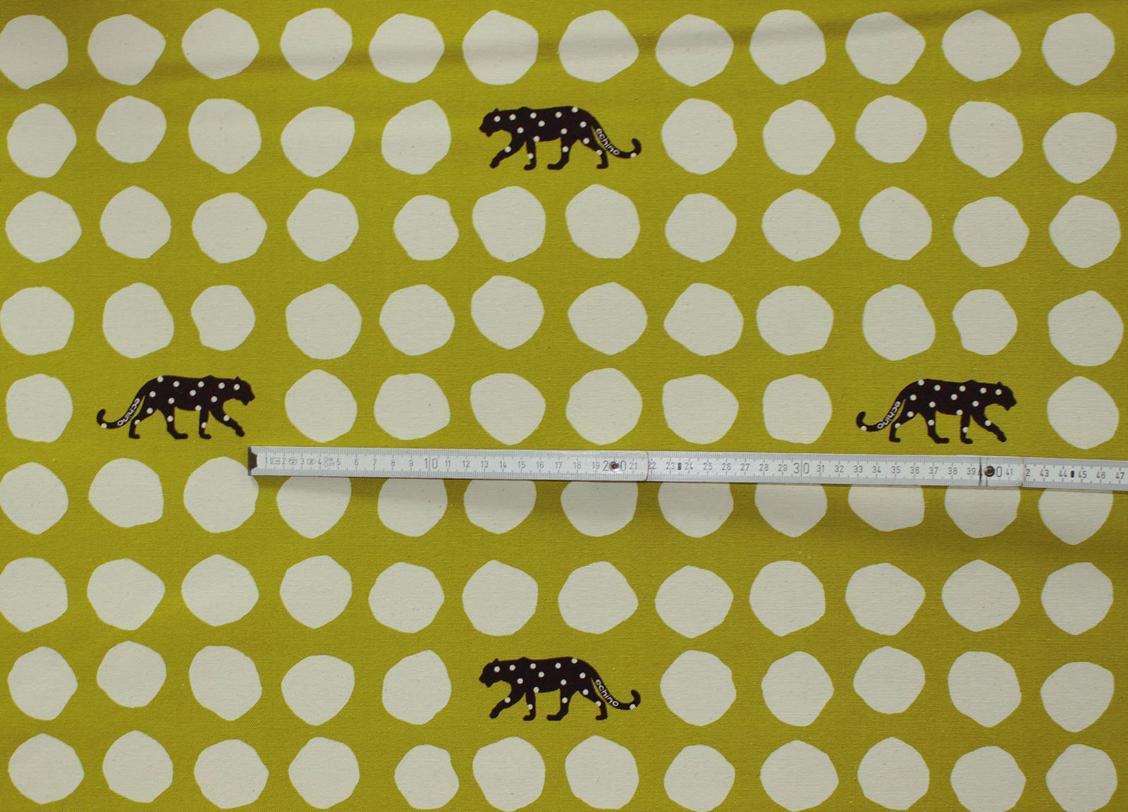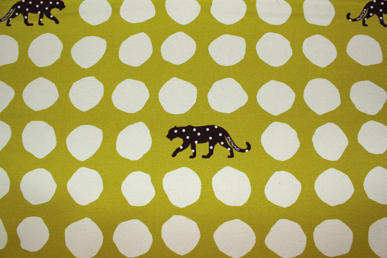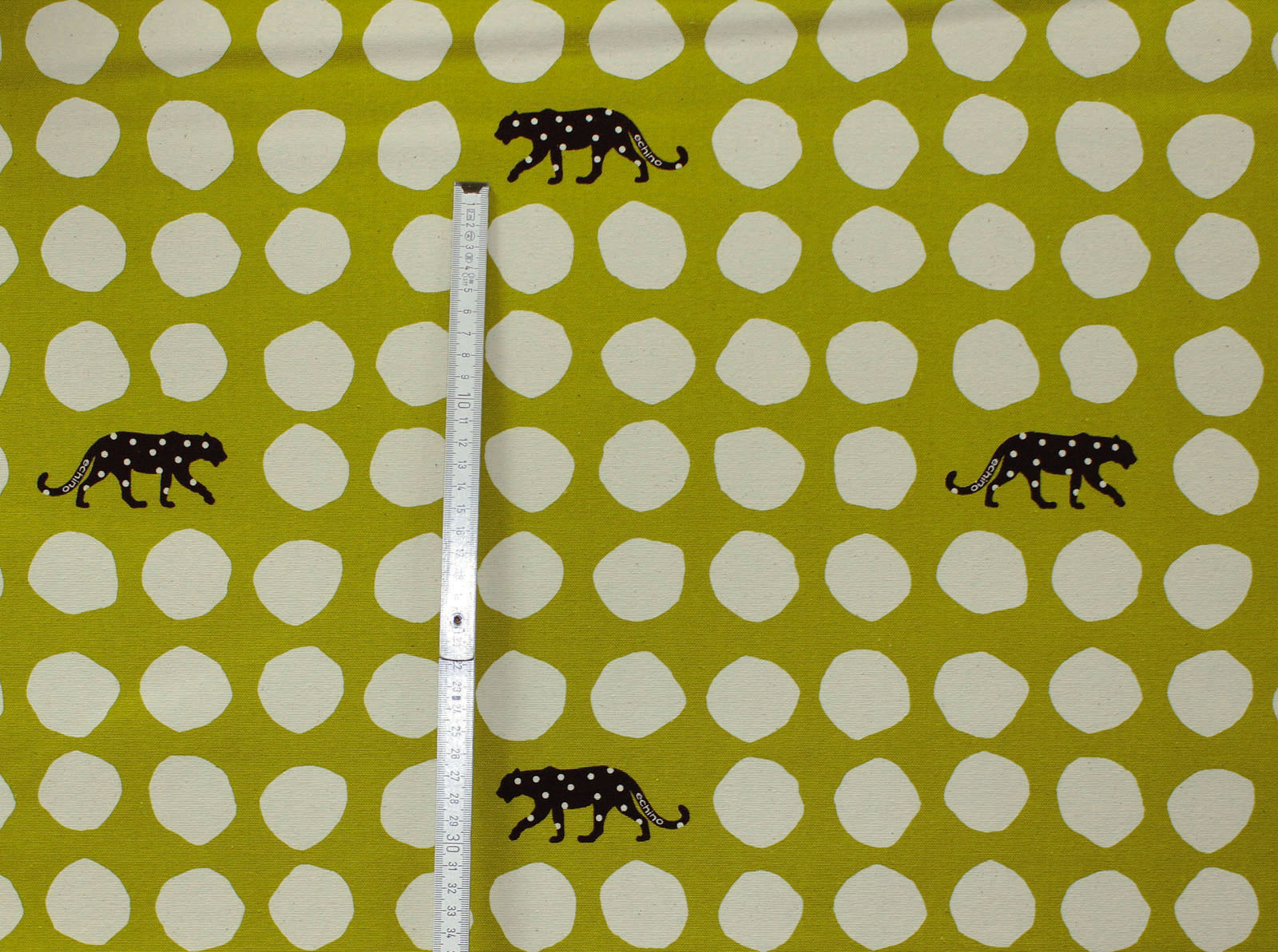 Wunderschöner fester, robuster Baumwoll- Canvas aus dem Hause Kokka, ideal für ausgefallene Taschenprojekte, Deko-Kissen oder ähnliches. Bitte unbedingt beachten, diese Serie ist vom Muster her wesentlich größer als der bereits bekannte Canvas. Die Panther haben eine Größe von ca. 9 cm x 4 cm, die Punkte einen Durchmesser von ca. 4 cm.Weitere Stoffe und ggf. genähte Objekte gehören nicht zu diesem Angebot, sondern dienen der Inspiration.