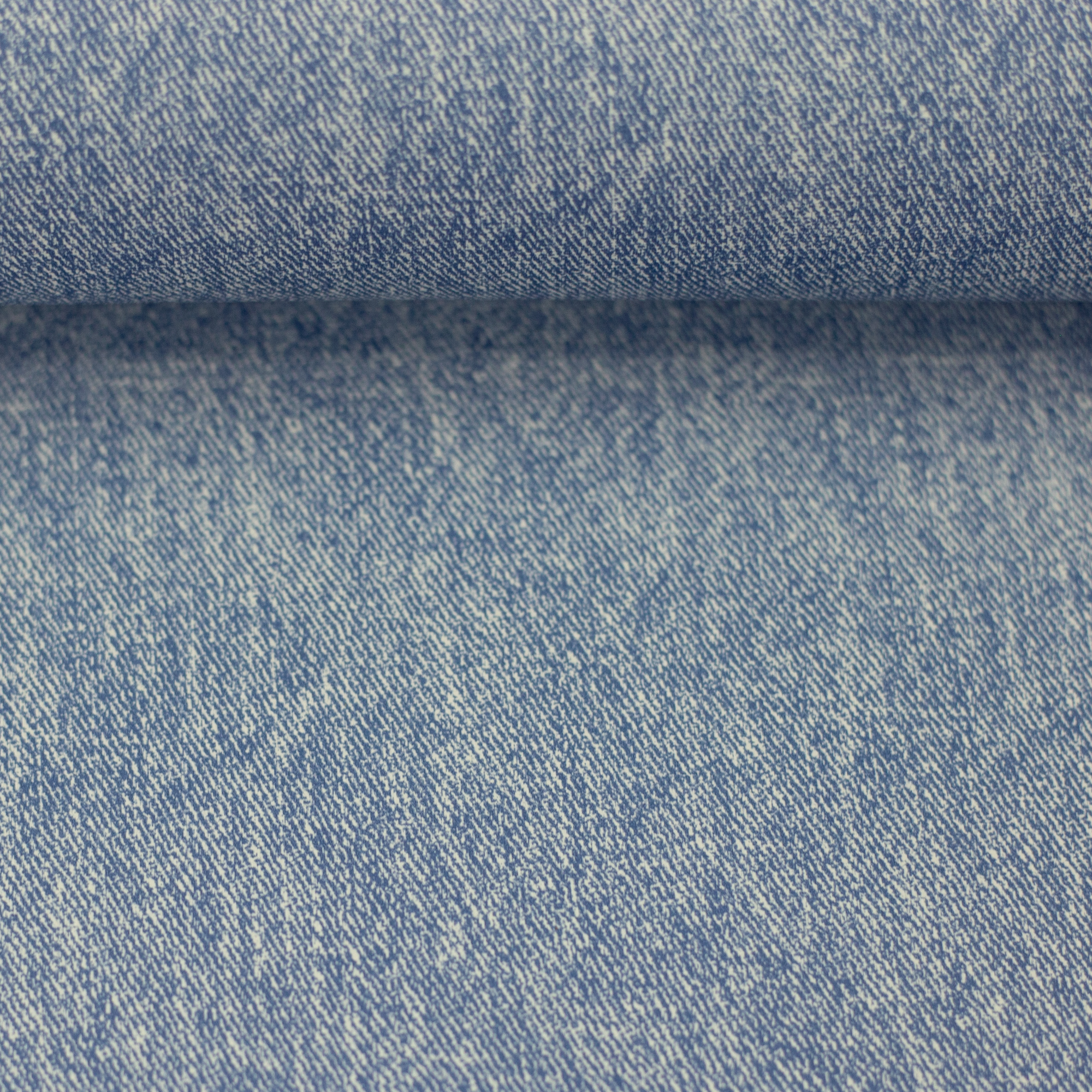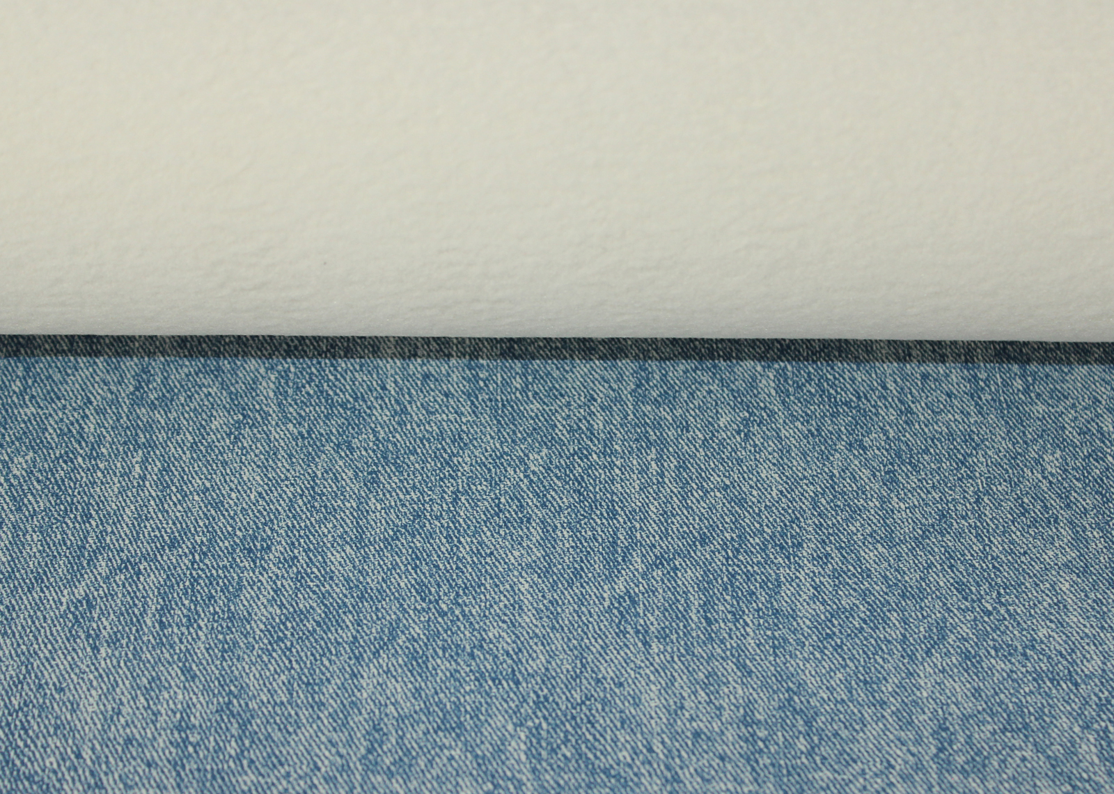 Trendiges Kunstleder in Jeansoptik. Die Rückseite ist weiß. Es ist super für Taschen, Portemonnaies und Deko geeignet.