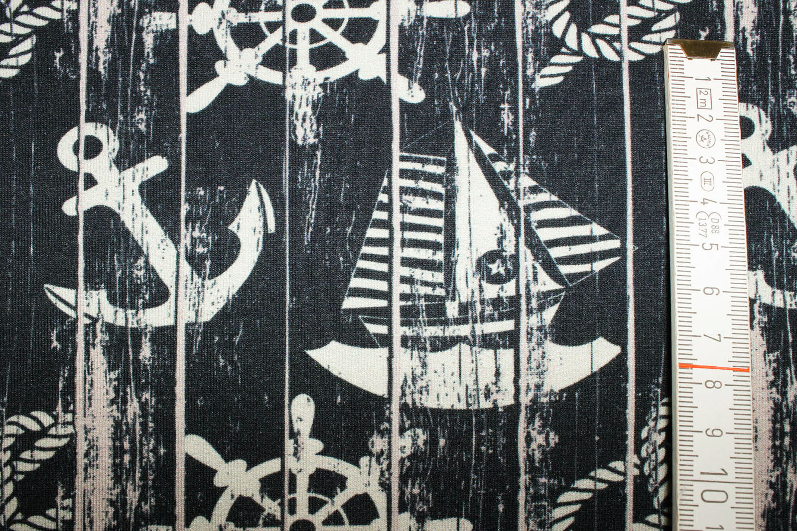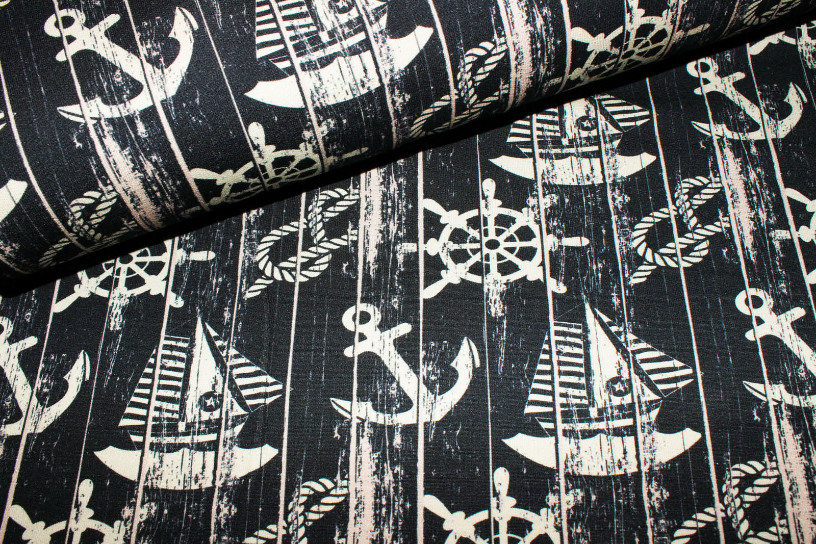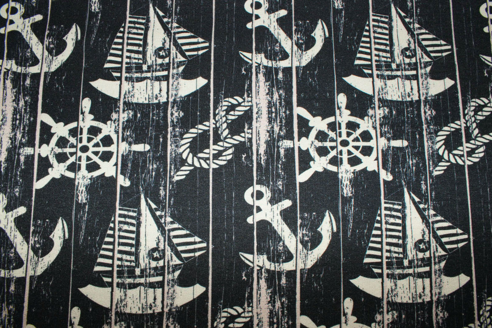 Hier biete ich Euch einen hochwertigen unangerauhten leichten Sommersweat von "Fräulein von Julie" mit Ankern, Steuerrädern, Schiffen und Seilen an. Durch die Dehnbarkeit und dadurch, dass der leichte Sommersweat schön dünn ist, eignet sich der Stoff nicht nur für Hoodies und Sweatjacken, sondern ebenfalls für etwas wärmere Langarm-Shirts, Mützen und Pumphosen.