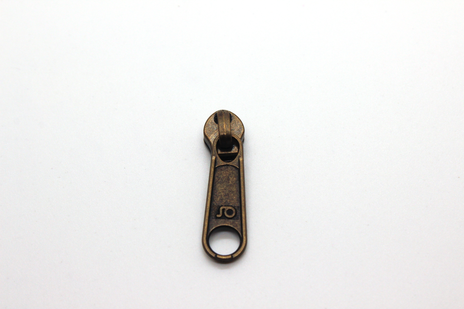 Zusätzlicher Schieber loser Bügelschieber messing-antik zu unserer Meterware "Reißverschluss metallisiert schmal"