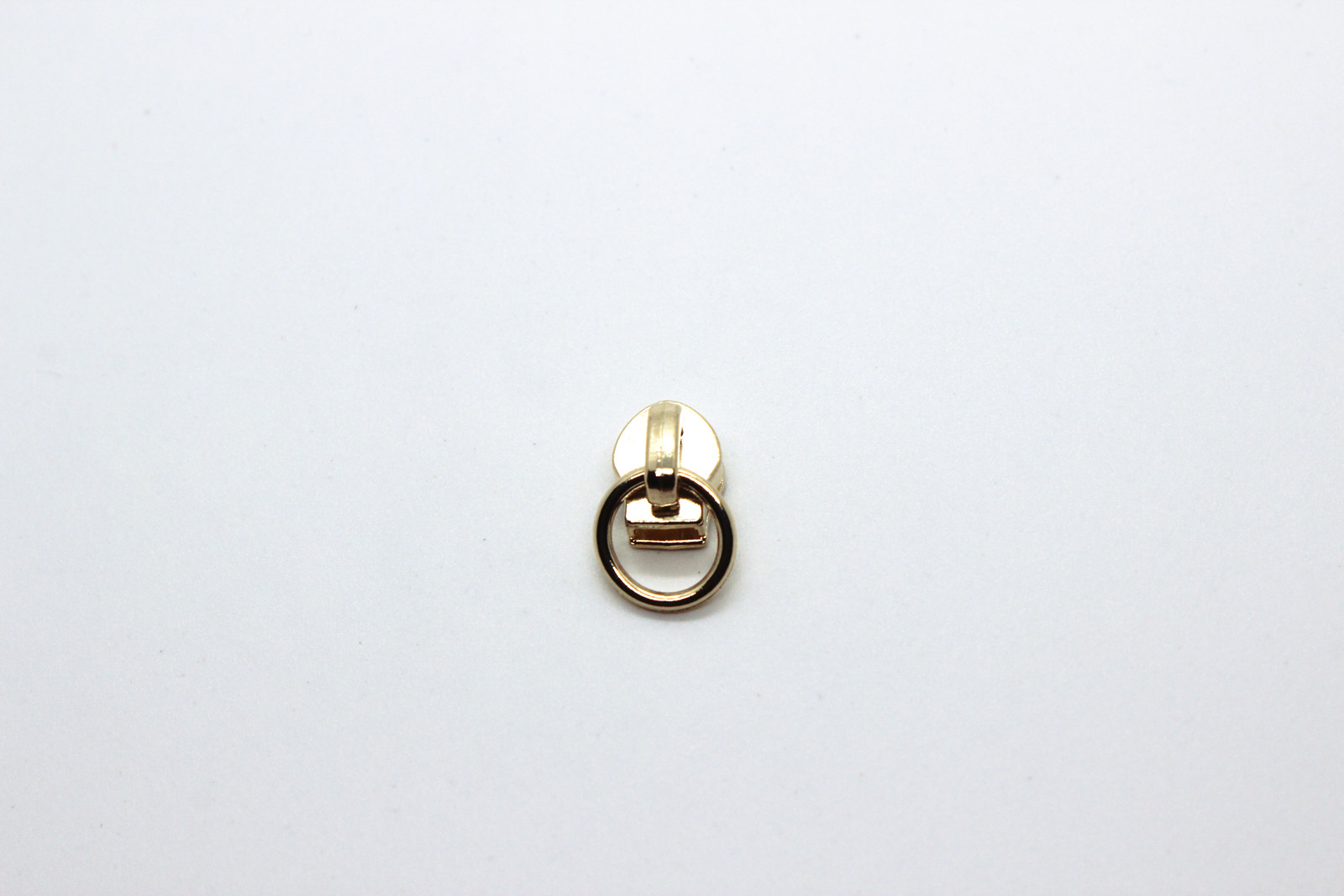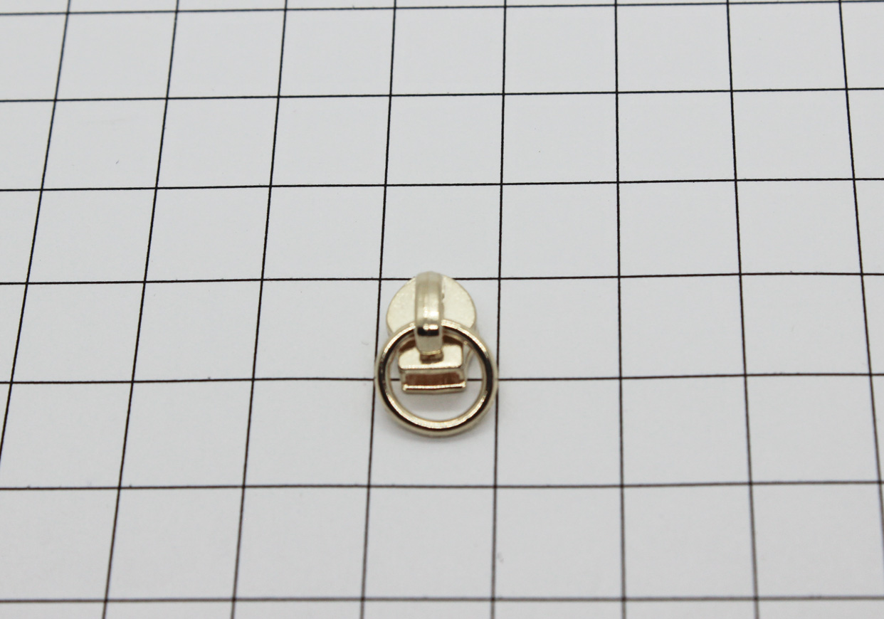 Zusätzlicher Schieber loser Bügelschieber mit direktem Ring eisgold zu unserer Meterware "Reißverschluss metallisiert schmal"