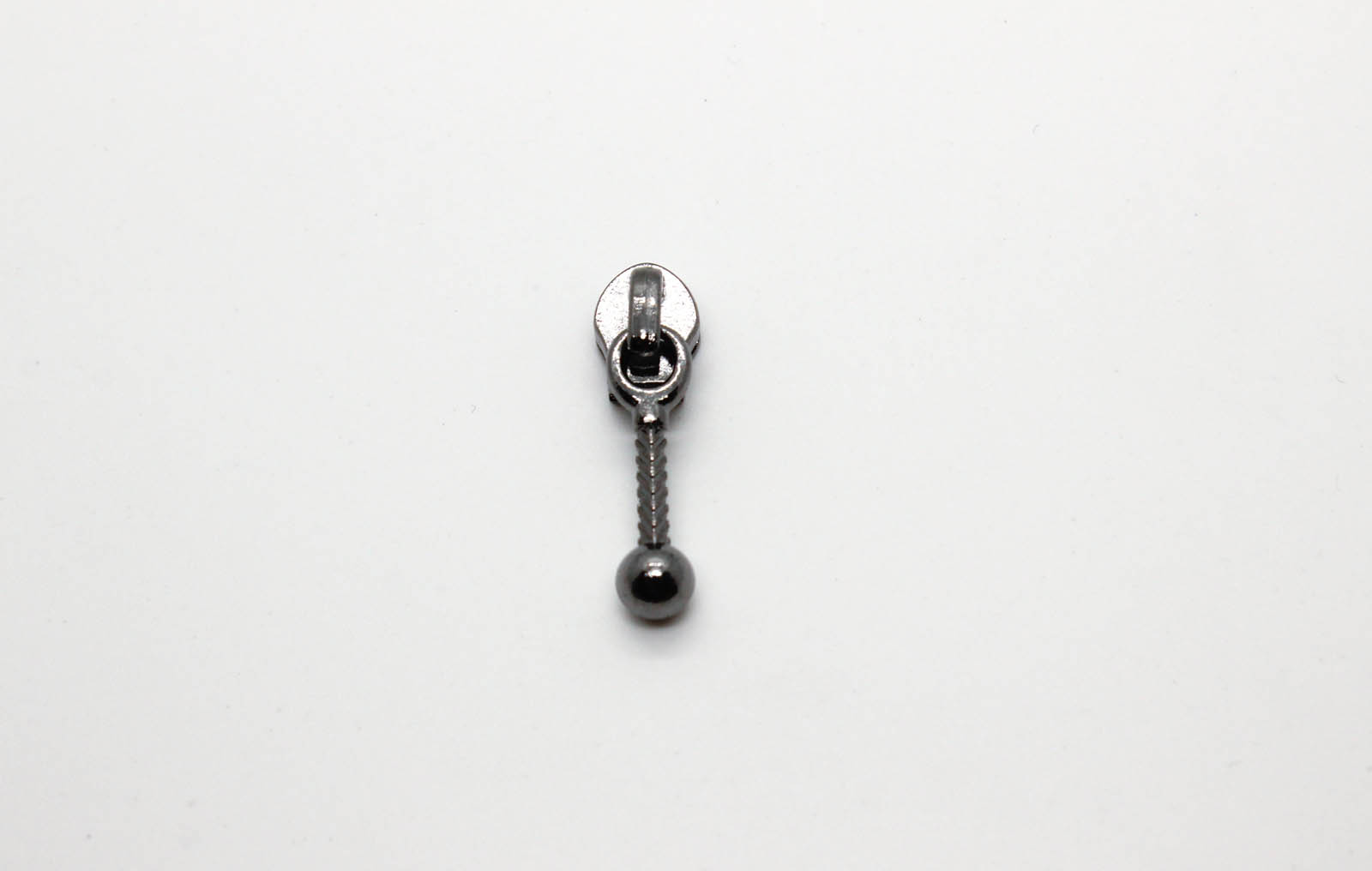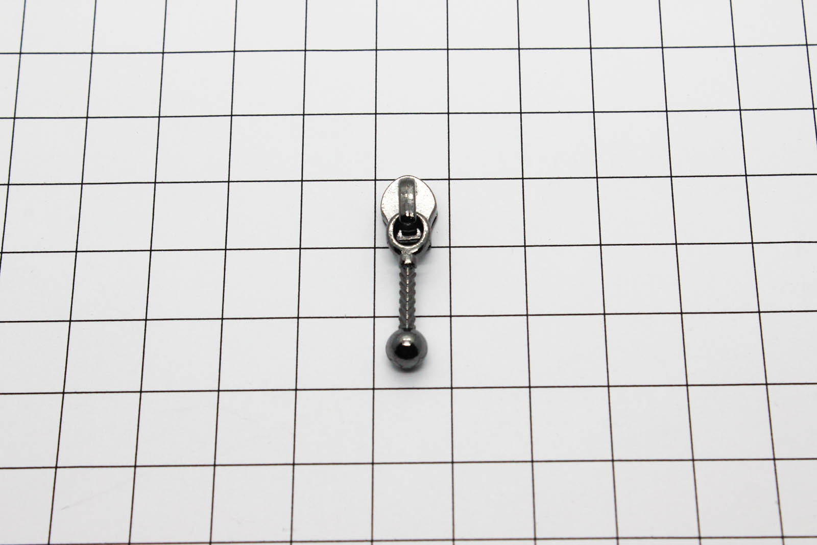 Zusätzlicher Schieber loser Bügelschieber mit Kugelstab titan schmal zu unserer Meterware "Reißverschluss metallisiert schmal"