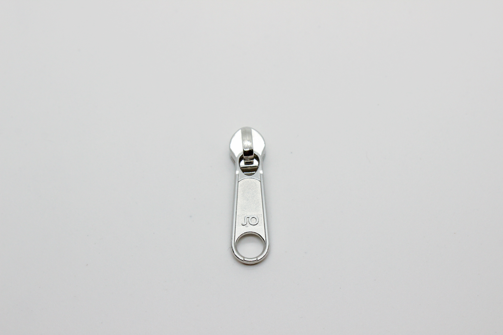 Zusätzlicher Schieber loser Bügelschieber silber zu unserer Meterware "Reißverschluss metallisiert schmal"