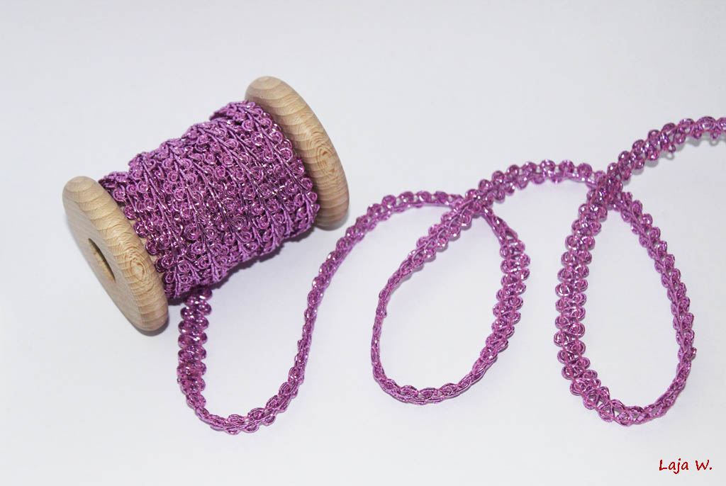 Außergwöhnliche glänzende etwas festere Lurexborte in hellpink bzw. kräftigem rosa zum Verzieren.
