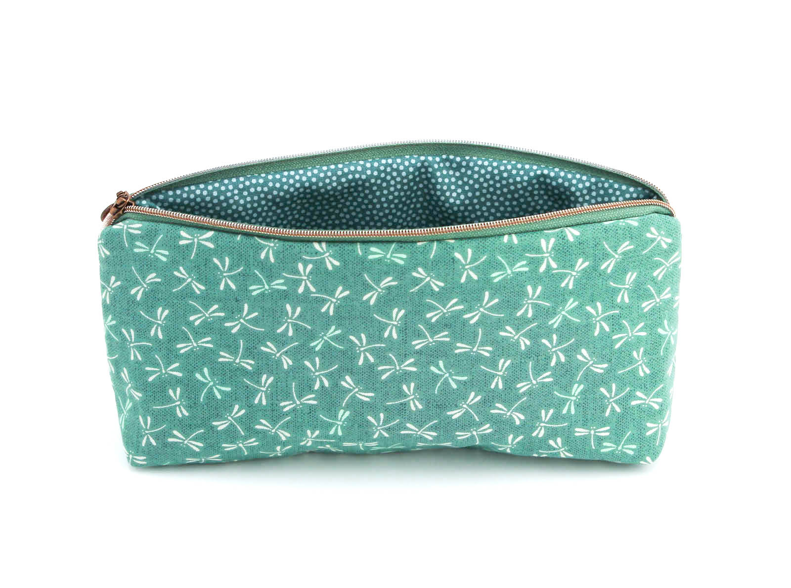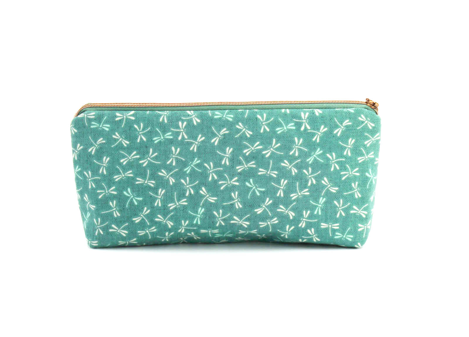 Damit das Täschchen einen gewissen Stand hat und angenehm von der Haptik ist, wurde es mit einem leichten Volumenvlies verstärkt. Die Tasche besteht außen aus einem hochwertigen Baumwoll-Leinen-Gemisch, das dem Mäppchen eine elegante und langlebige Struktur verleiht. Im Inneren ist es mit einem weichen Baumwollwebstoff ausgekleidet, um den Stiften optimalen Schutz zu bieten. Der Reißverschluss mit metallisierter Kunststoffspirale und einem Designschieber in Herzform ermöglicht ein einfaches und sicheres Öffnen und Schließen.