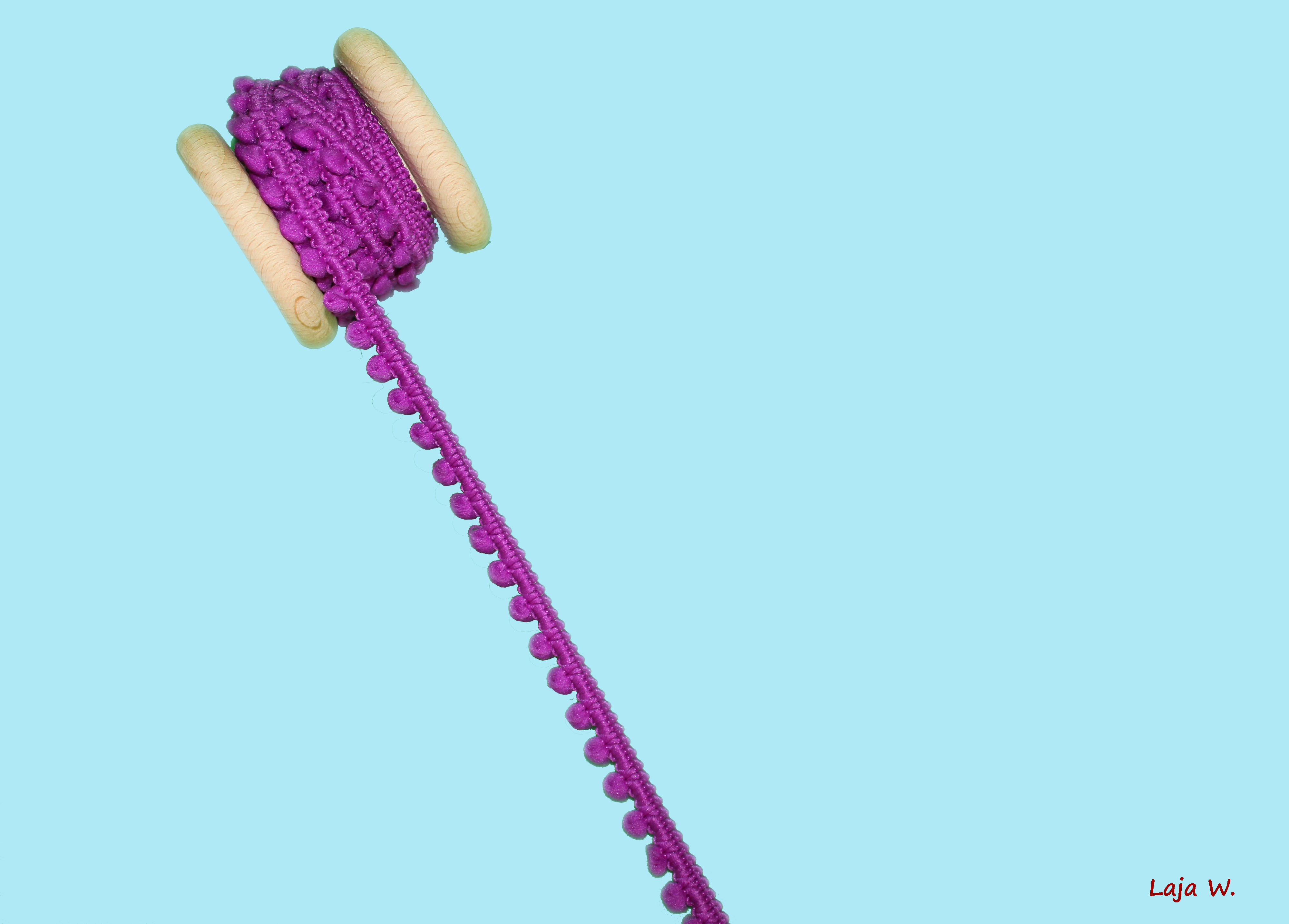 Zum Aufpeppen von Kleidung und Accessoires biete ich Euch diese Minibommelborte in der Farbe pink an. Die Minibommelborte ist ca. 10 mm breit.