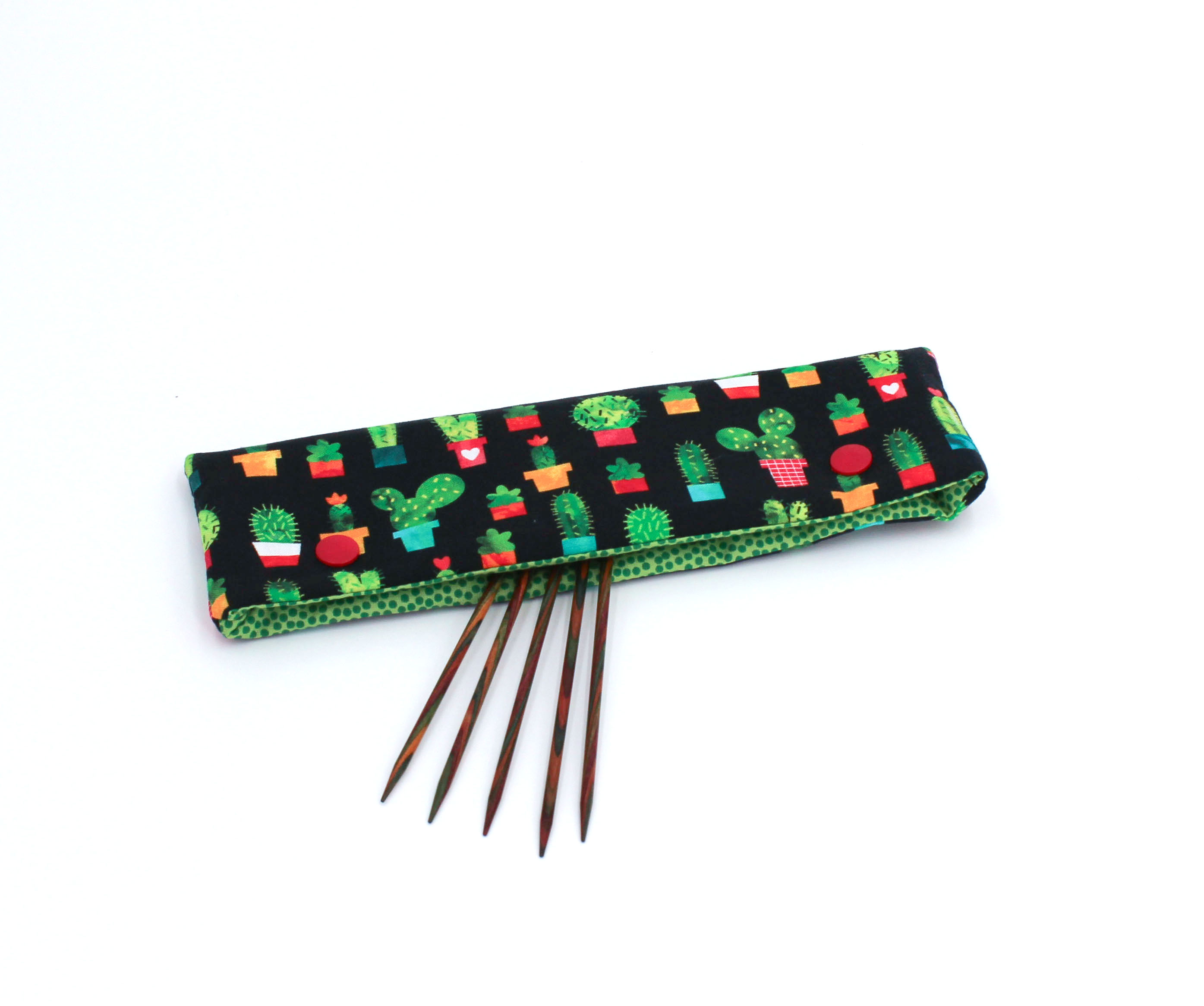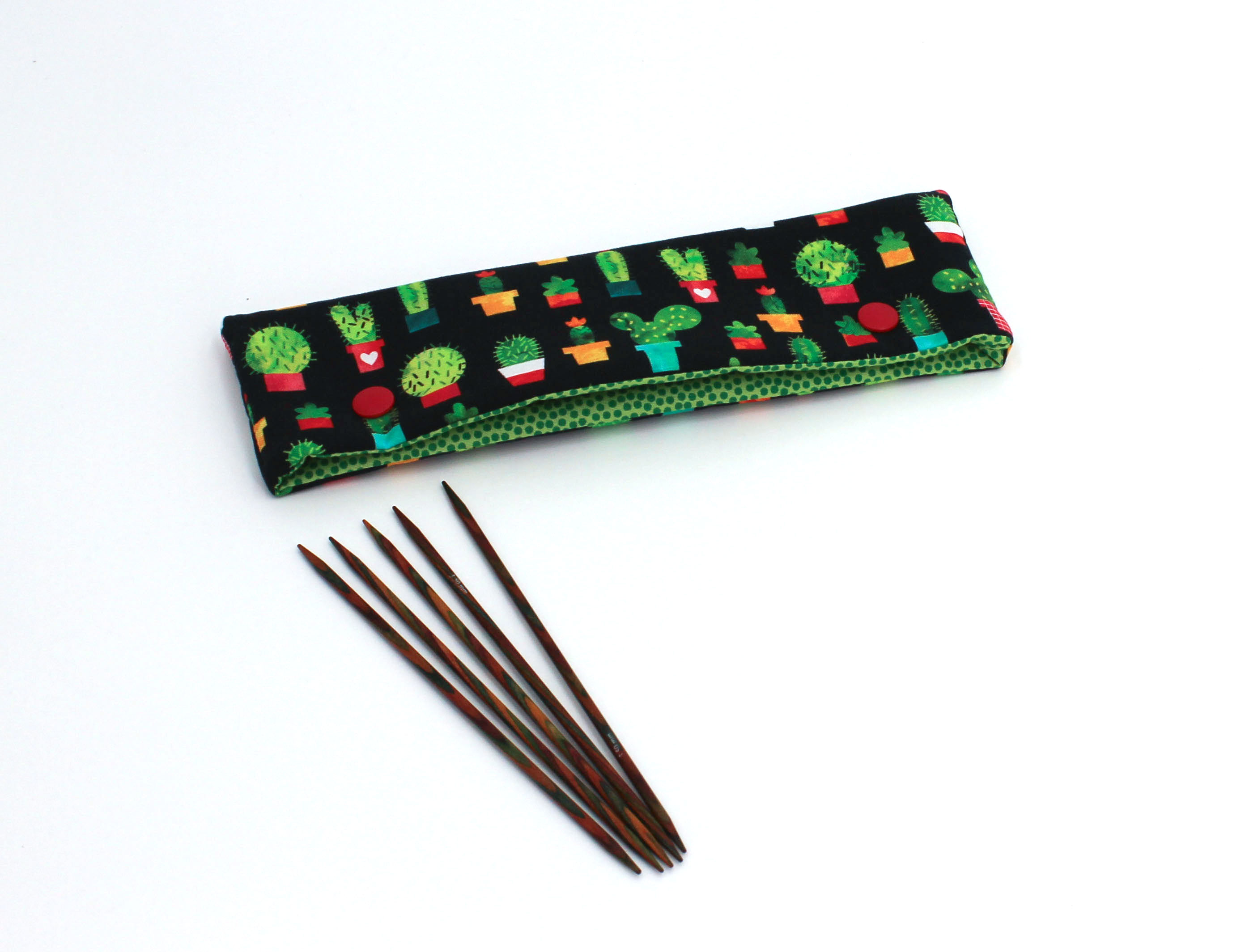 Entdecken Sie unsere hochwertige Nadelgarage aus feinen US-Designer-Baumwollwebstoffen, perfekt für die Aufbewahrung Ihrer gestrickten Sockenprojekte. Diese Nadelgarage verhindert effektiv, dass Ihre Stricknadeln aus den Maschen rutschen, während Sie eine Pause einlegen. Die Verwendung von hochwertigem Volumenvlies sorgt für eine angenehme Haptik, während die zwei KAM Snaps einen sicheren Verschluss gewährleisten. Jede Nadelgarage wird individuell mit Liebe zum Detail gefertigt, daher können Stoffausschnitte leicht variieren, aber das Ergebnis ist stets schön und harmonisch. Ein ideales Geschenk für Sockenstrickliebhaber! Bestellen Sie jetzt und erleben Sie die perfekte Kombination aus Funktionalität und Stil für Ihre Strickprojekte.Maße: - Höhe: ca. 7 cm