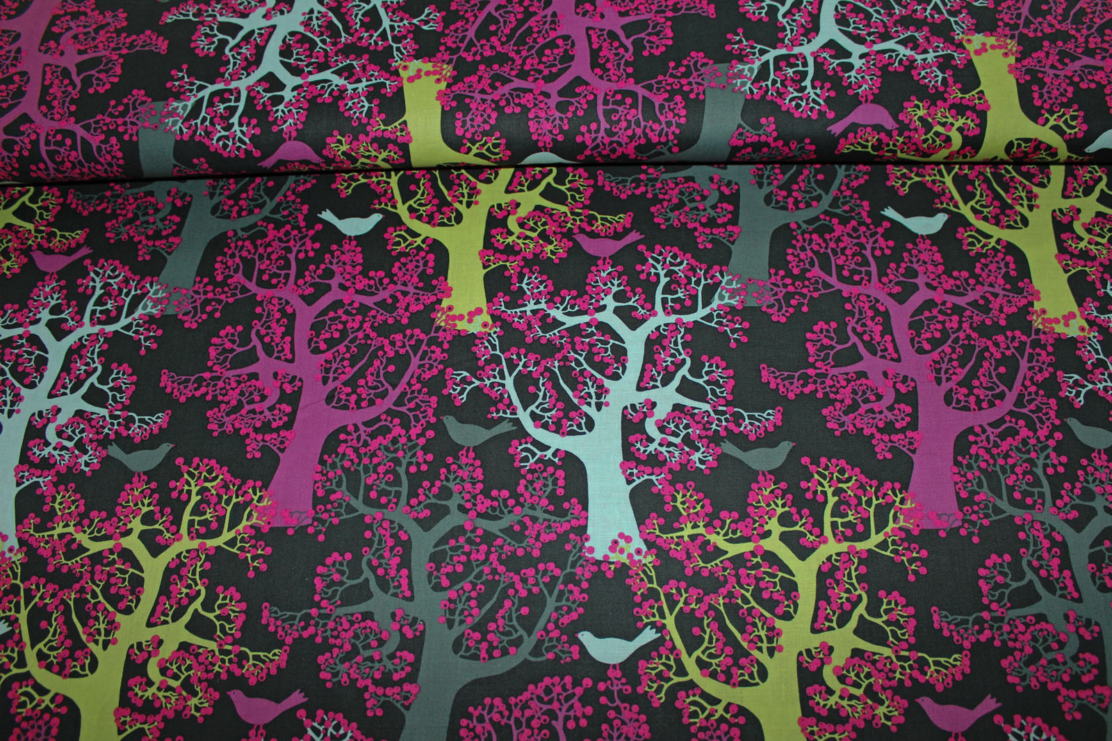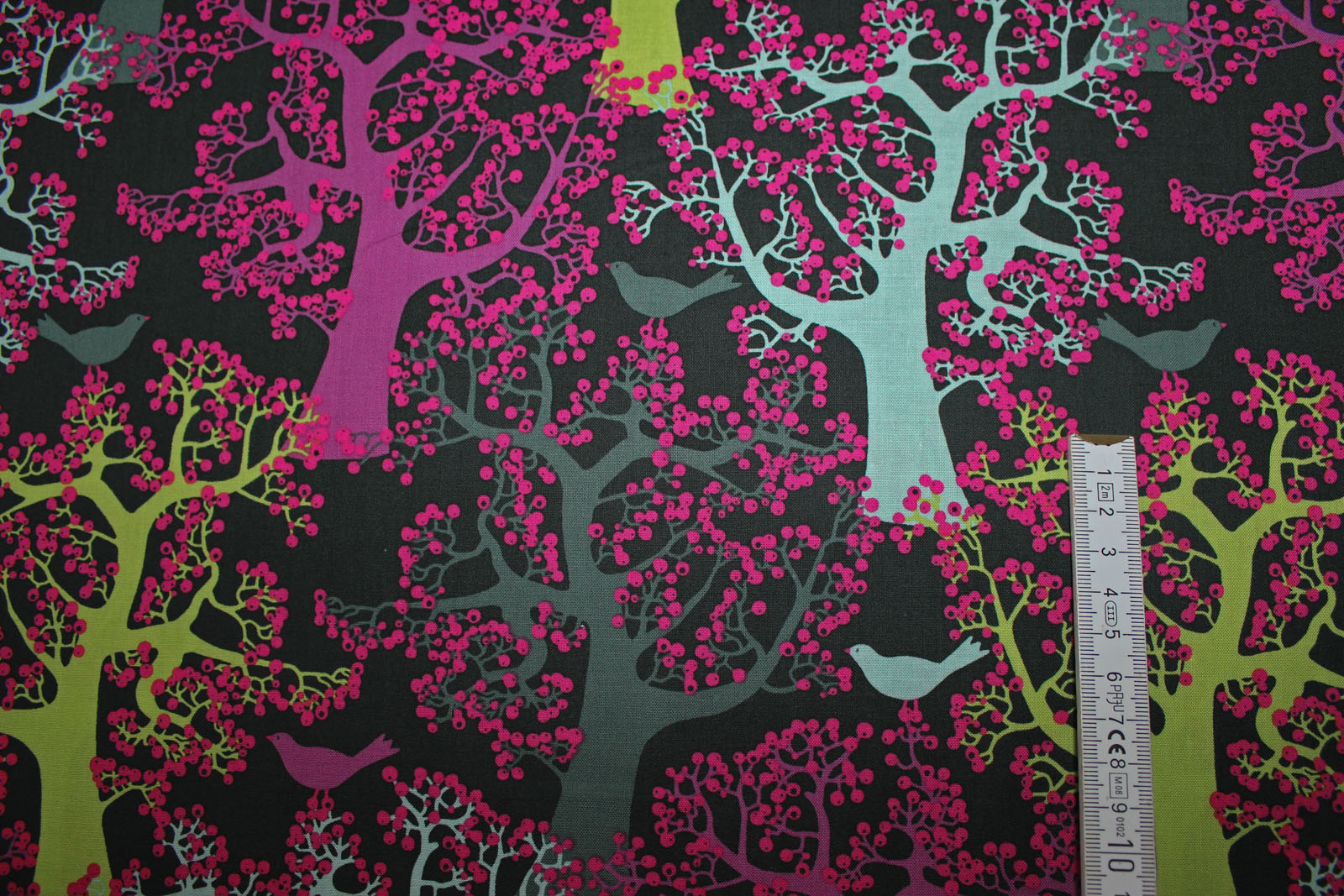 Hier biete ich Euch eine feinfädige leichte Popeline der Firma C. Pauli an. Die Popeline ist aus 100% Baumwolle mit farbenreichen Bäumen und Vögeln auf schwarzem Untergrund. Der Stoff ist geeignet fürBettwäsche, Kissen, Taschen, Kleidung, Tücher, Schals