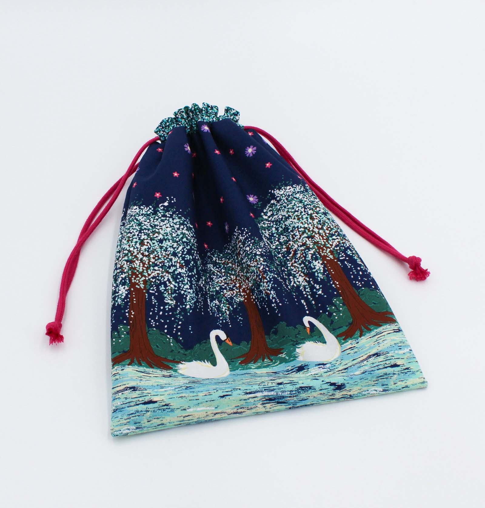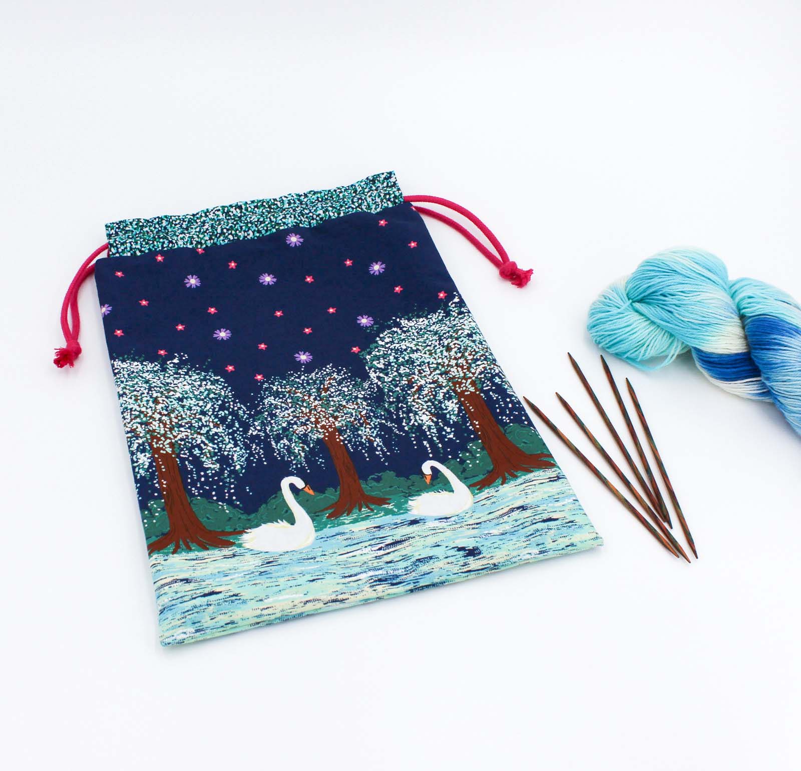 Produkt: Projektbeutel / Handarbeitsbeutel mit Kordel Schwanenliebe