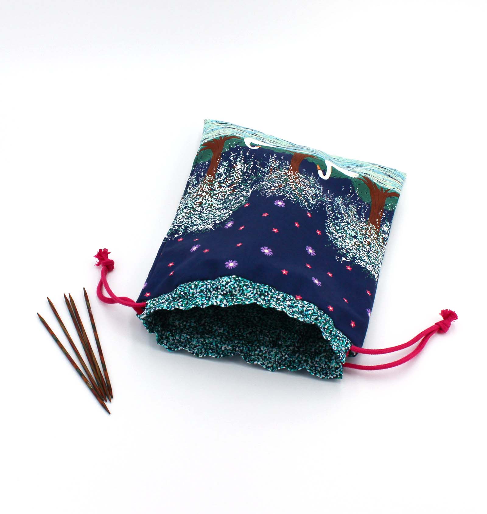 Entdecken Sie unseren kleinen, praktischen Handarbeitsbeutel mit Tunnelzug, gefertigt aus hochwertigen US-Designer-Baumwollwebstoffen. Dieser Beutel ist perfekt dimensioniert für ein Sockenstrickprojekt (100 g Wolle) oder ähnliches. Hübsch gefüttert und bewusst nicht übermäßig verstärkt, ermöglicht dieser Beutel eine schnelle Aufbewahrung in Taschen oder Rucksäcken. Mit einer Kordel verschlossen, lässt sich der Beutel schnell öffnen und schließen.
