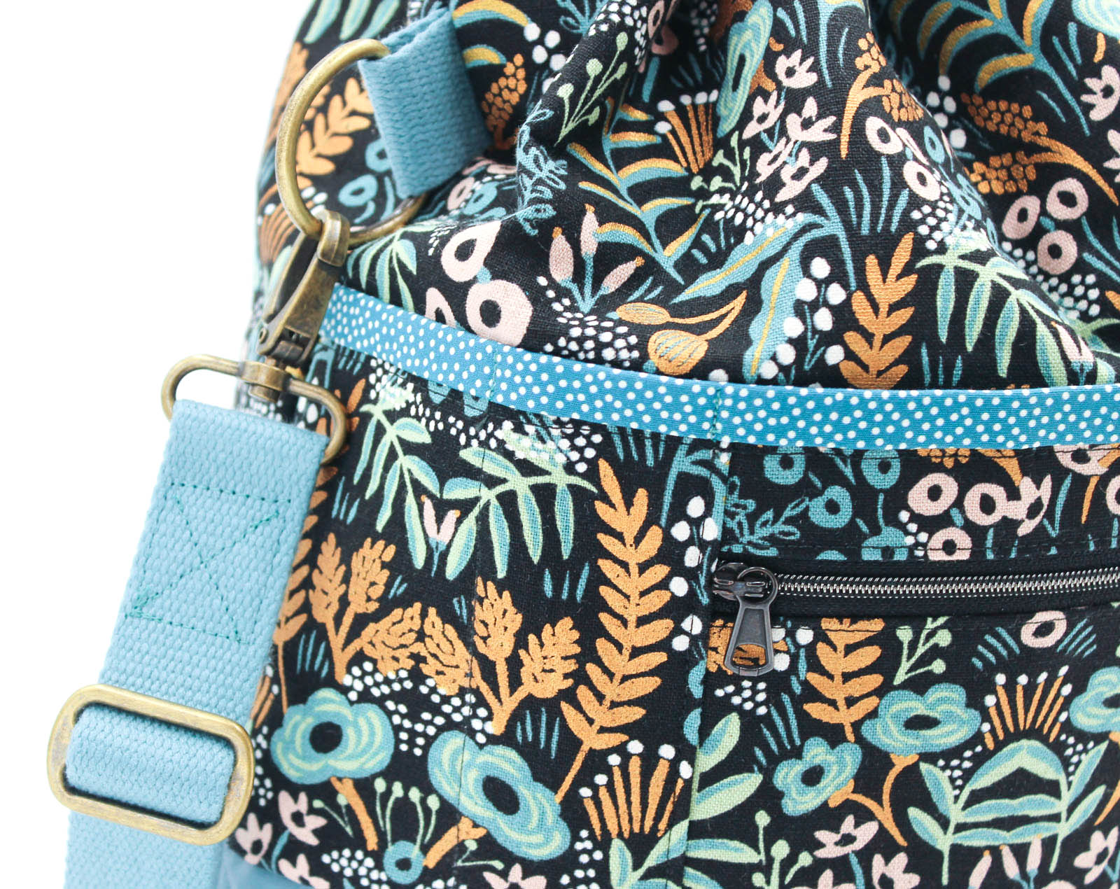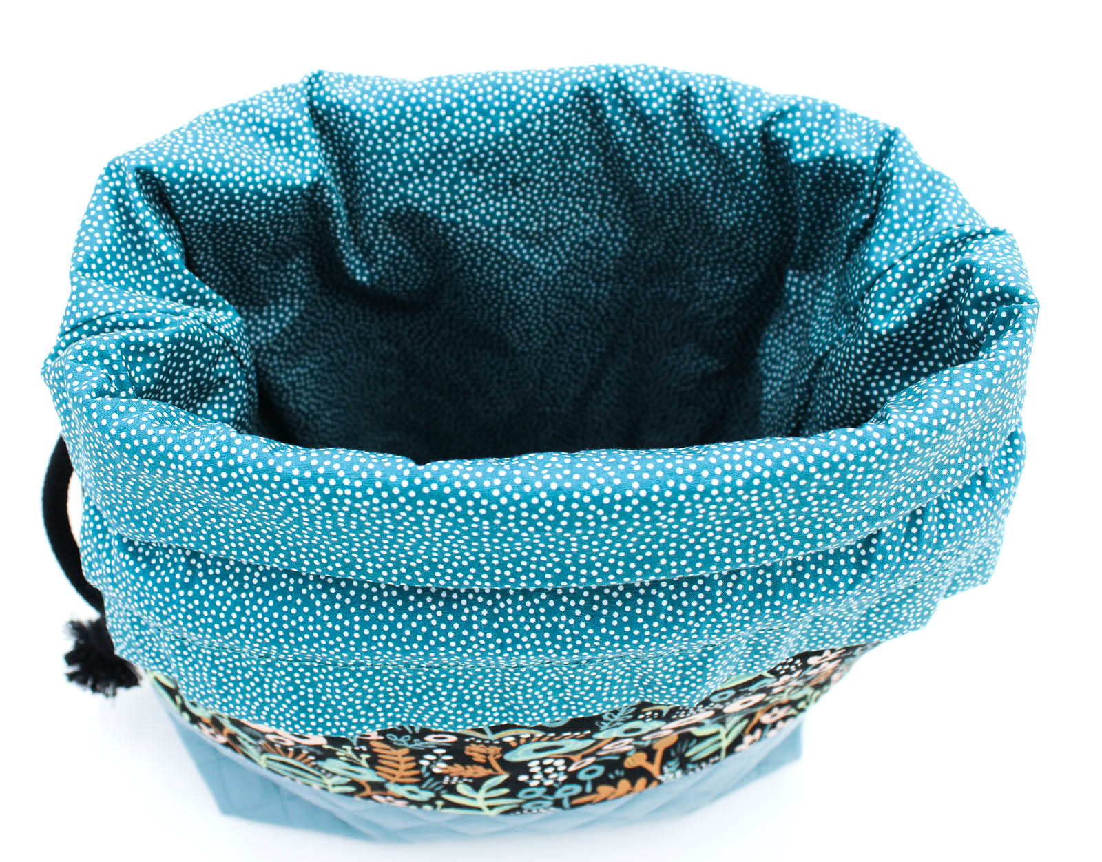 Entdecken Sie unsere praktische Projekttasche, gefertigt aus hochwertigem US Canvas (Leinen/Baumwollgemisch) designed by Rifle Paper Co. mit stilvollen Metalliceffekten, Kunstleder und einem charmanten gepunkteten Baumwollwebstoff. Diese Tasche bietet ausreichend Platz für Ihr Strick- oder Häkelprojekt.