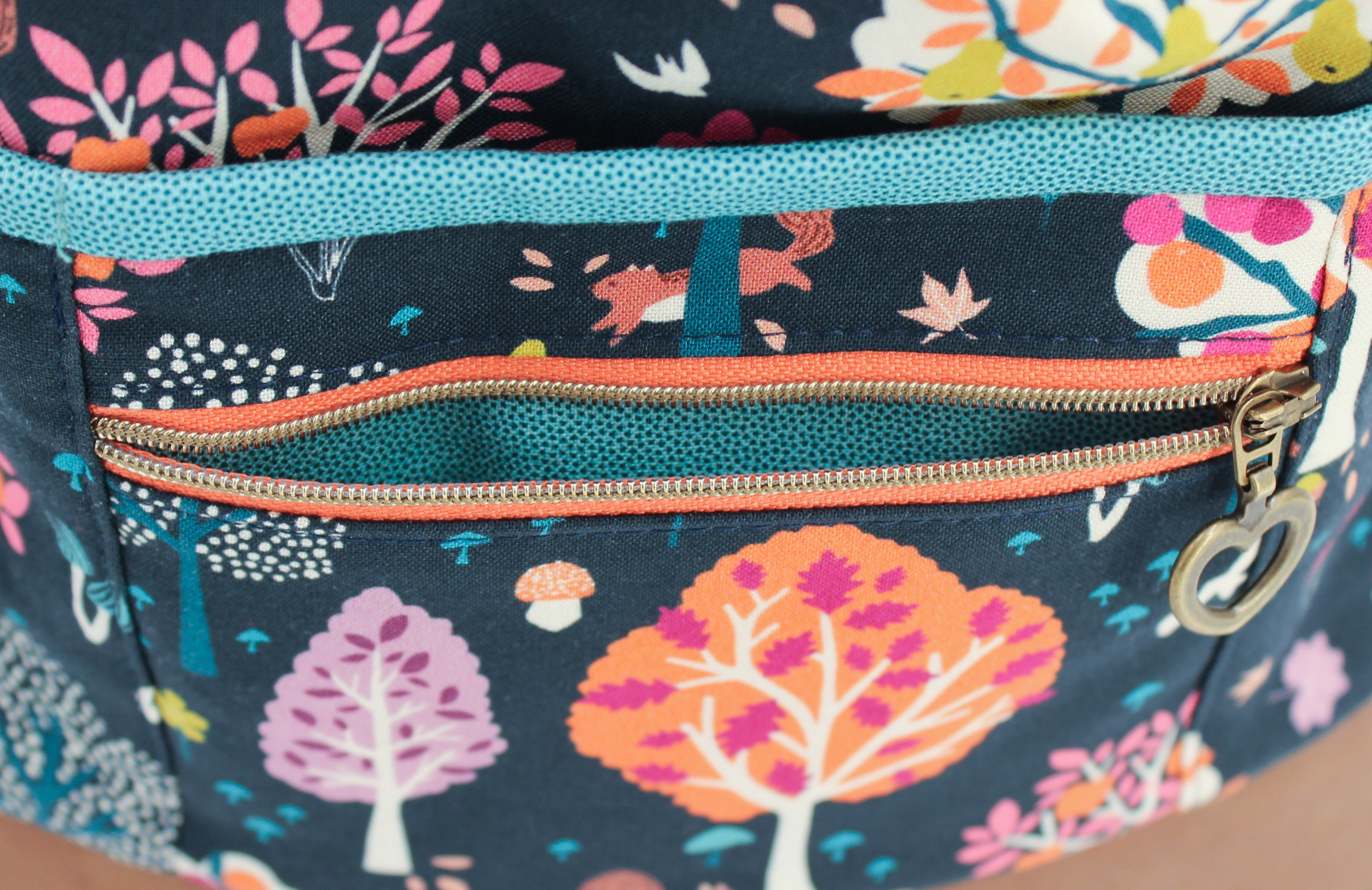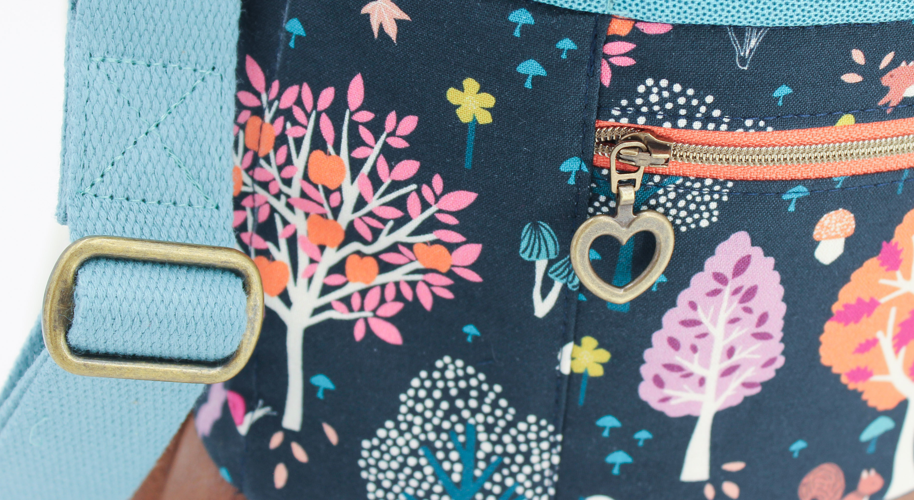 Der seitlich befestigte Tragegurt ermöglicht es, die Tasche mühelos überall hin mitzunehmen. Außen bietet sie drei Steckfächer und ein kleines Reißverschlussfach. Im Inneren ist genügend Platz für Wolle und durch ein breites Steckfach an der einen Seite sind Schere, Strick- oder Häkelnadeln, Maßband und co. ordentlich verstaut. Der Kordelzug ermöglicht ein schnelles Verschließen und Öffnen der Projekttasche.