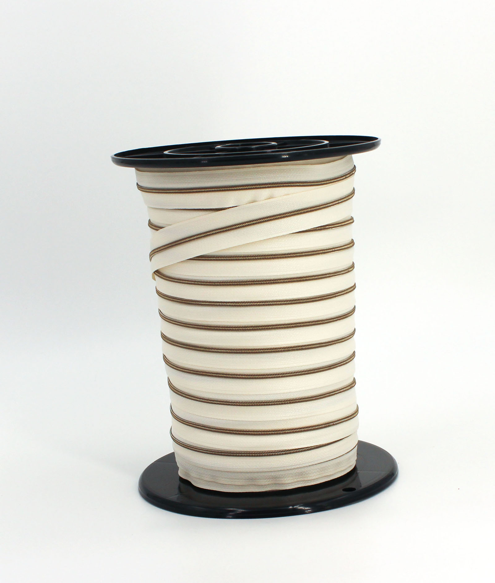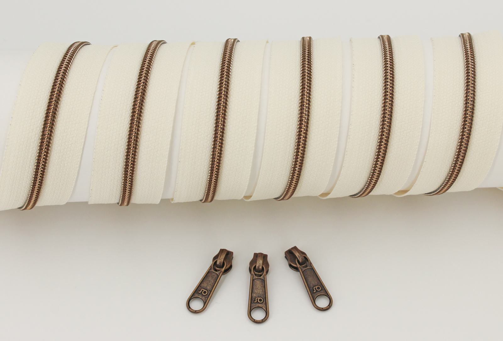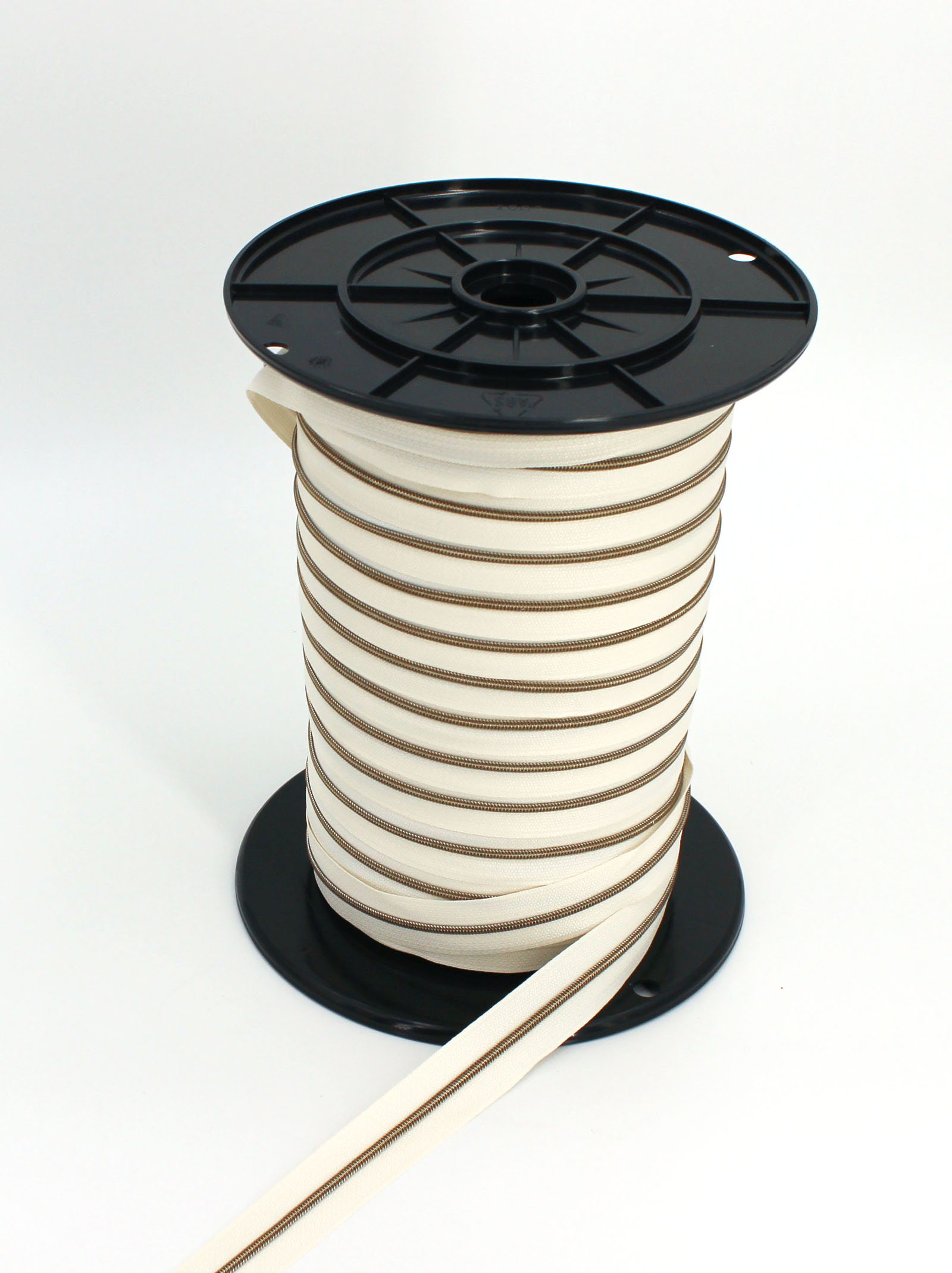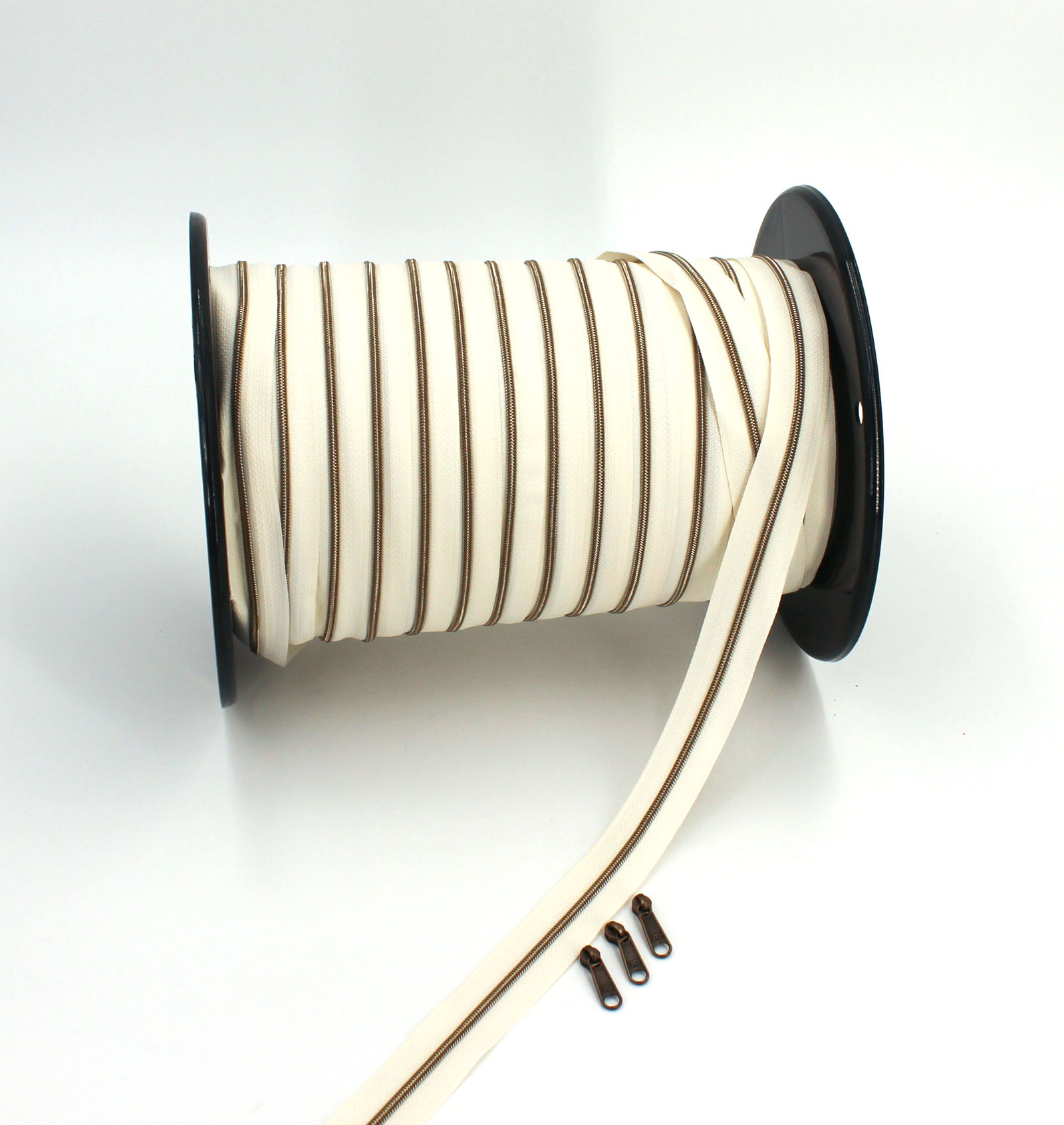 Produkt: Reißverschluss endlos, metallisiert schmal naturweiß/messing-antik