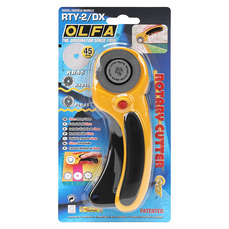 Entdecken Sie den OLFA Ergonomischen DELUXE Rollschneider 45 mm, RTY-2/DX – Ihr idealer Begleiter für präzises und komfortables Schneiden. Ausgestattet mit einem rutschfesten, vorgeformten Griff und einer RB45H Klinge, bietet dieser Rollschneider Langlebigkeit, Komfort und Sicherheit.