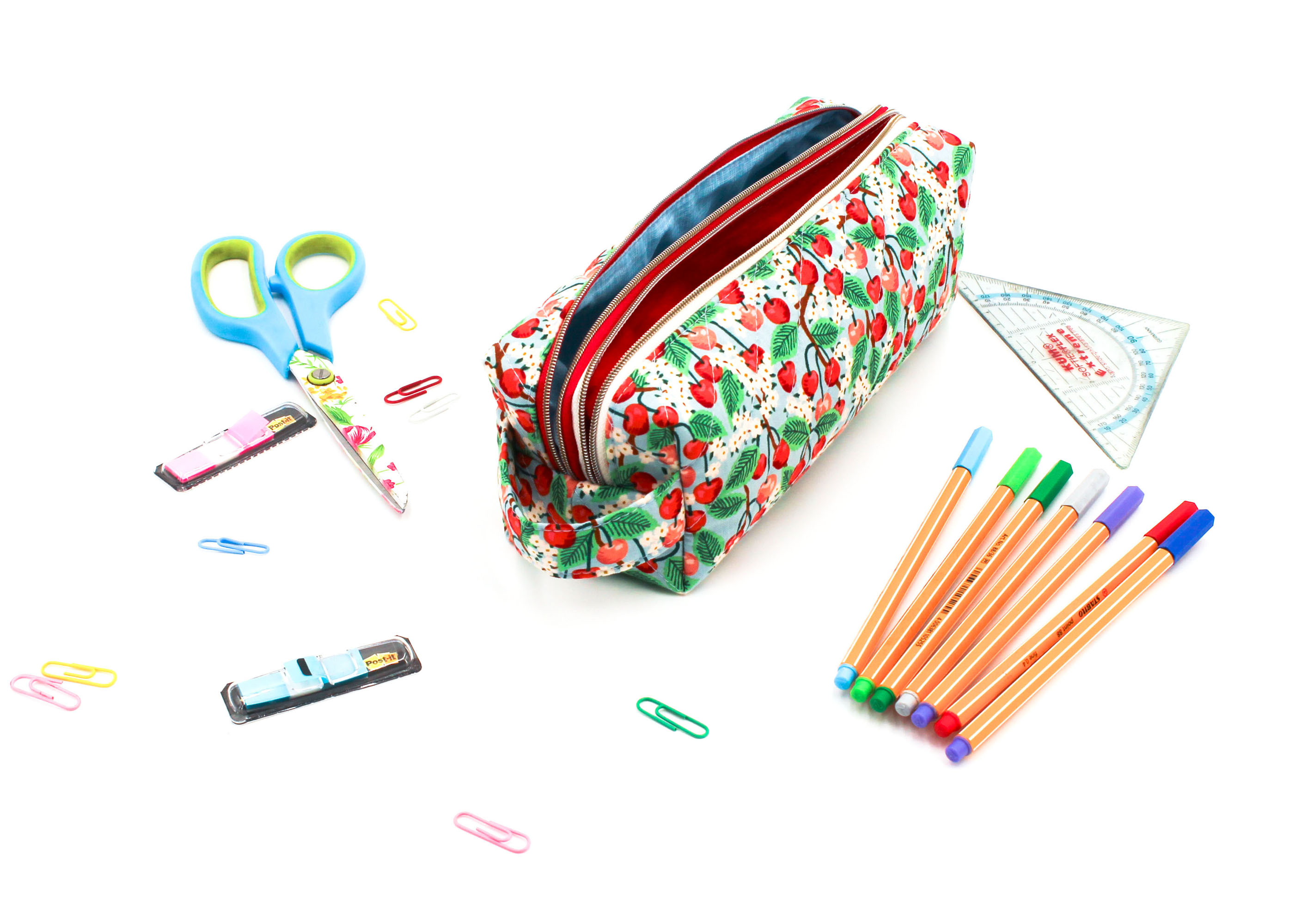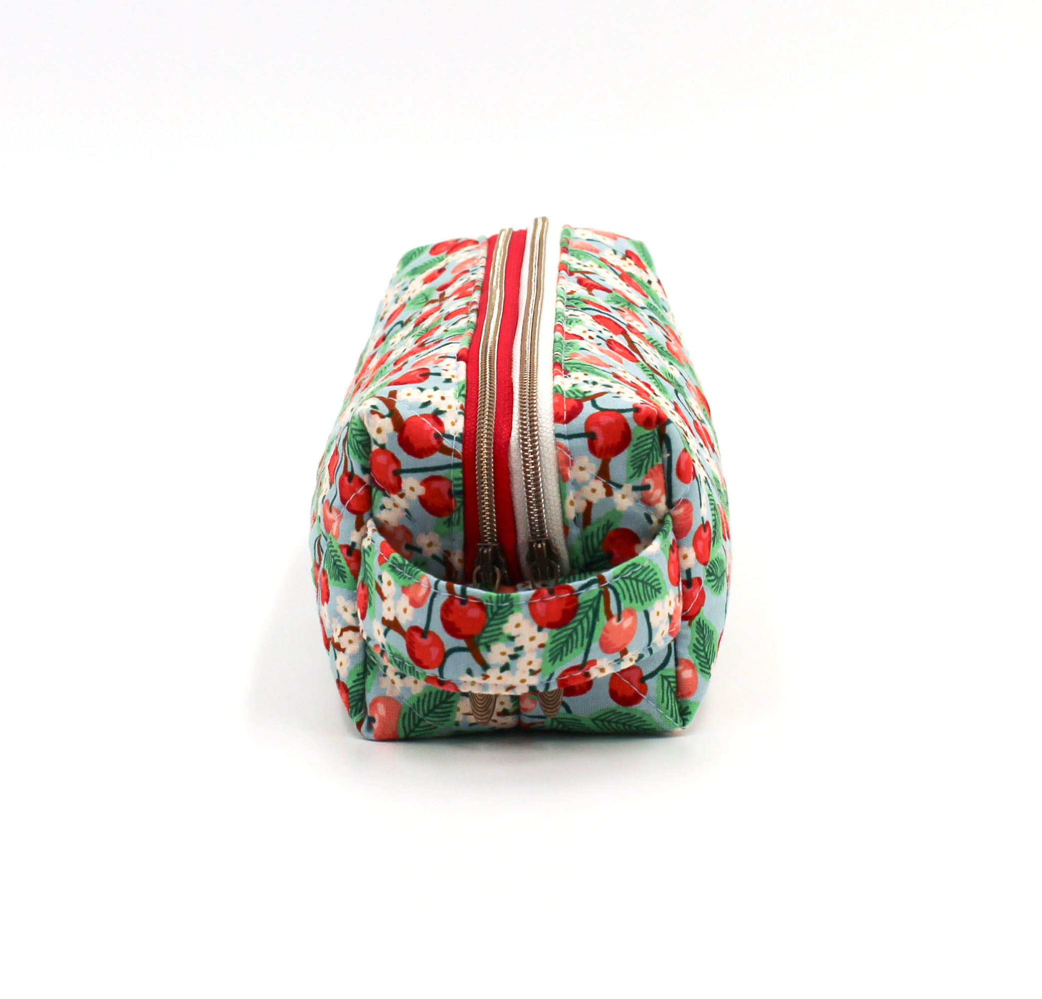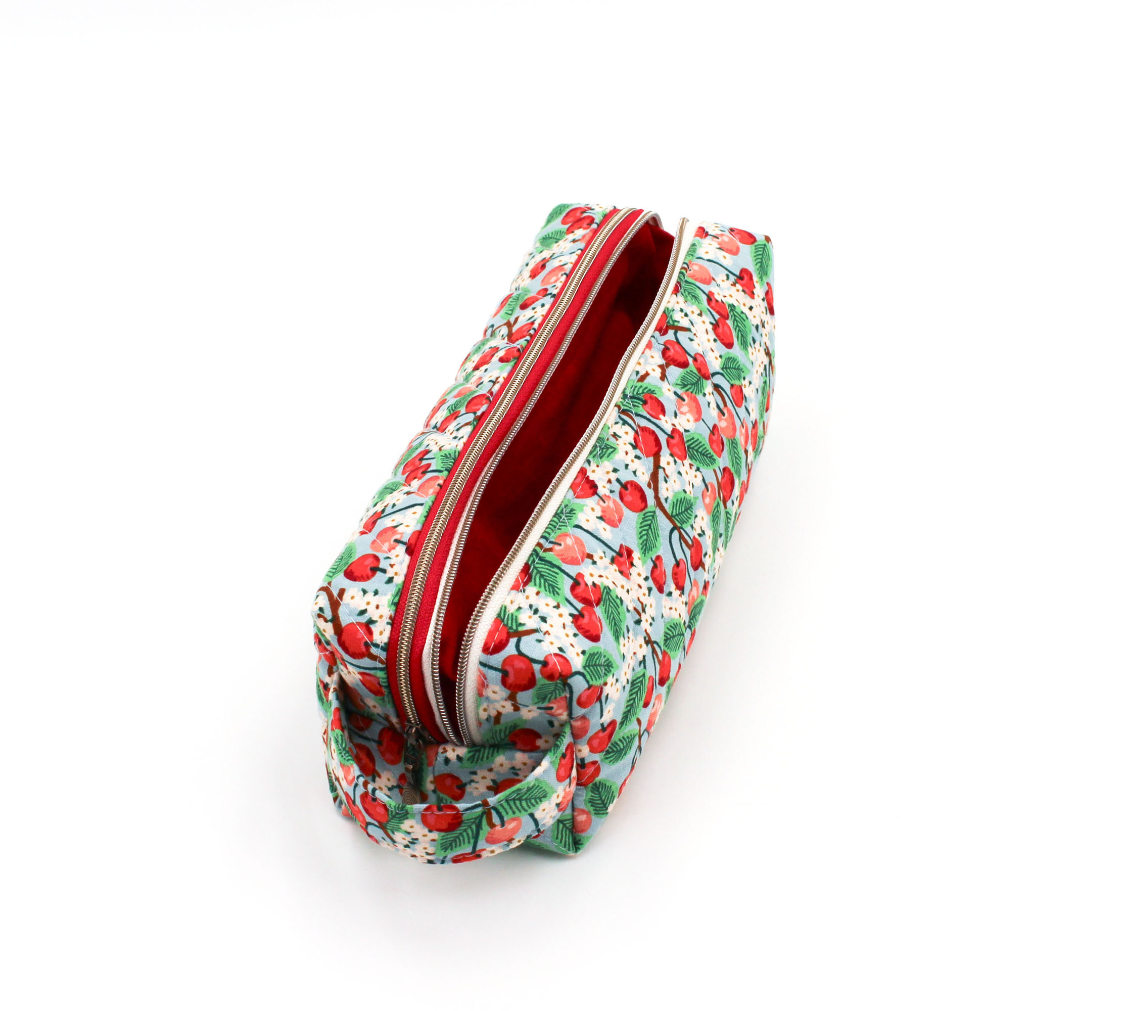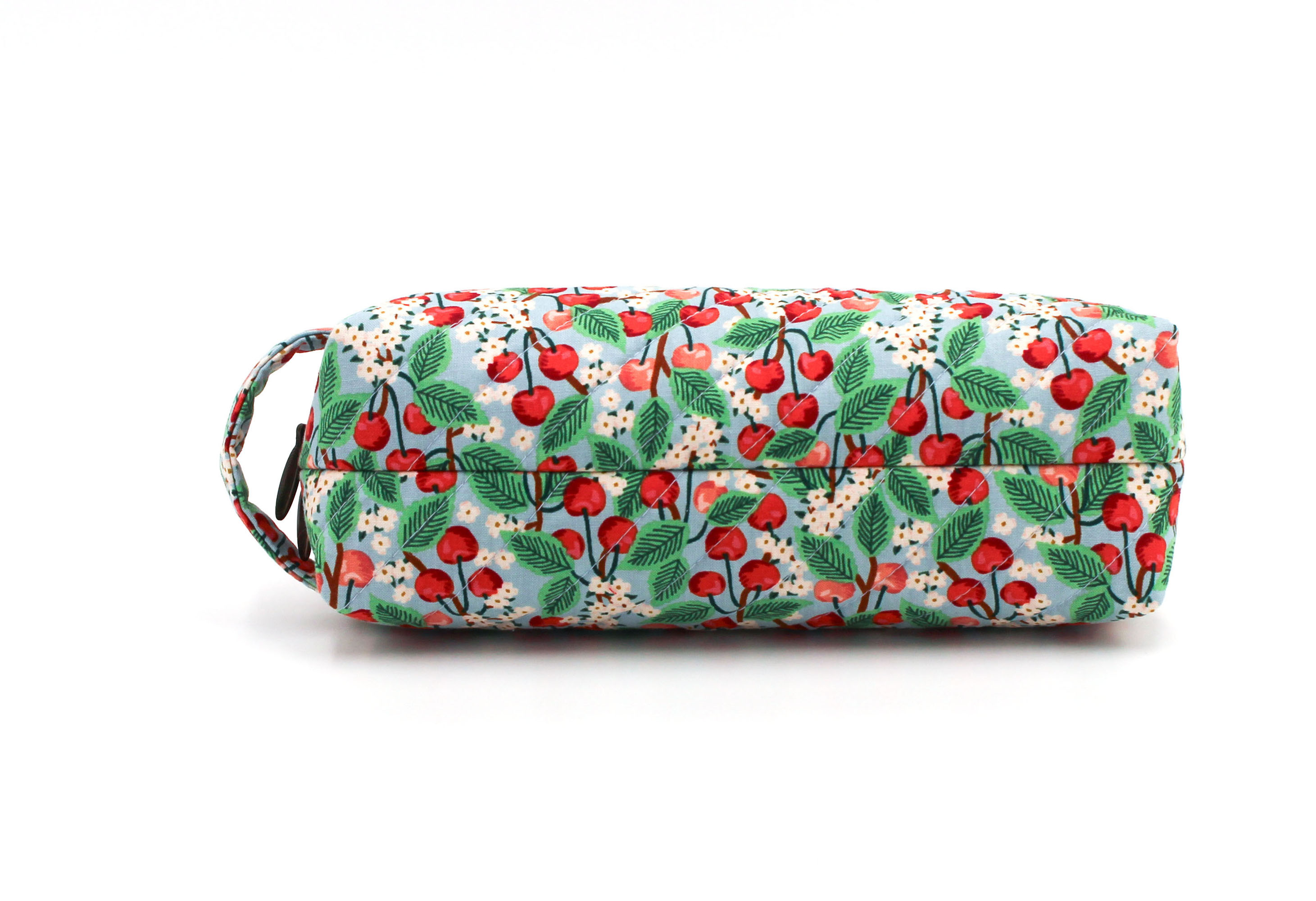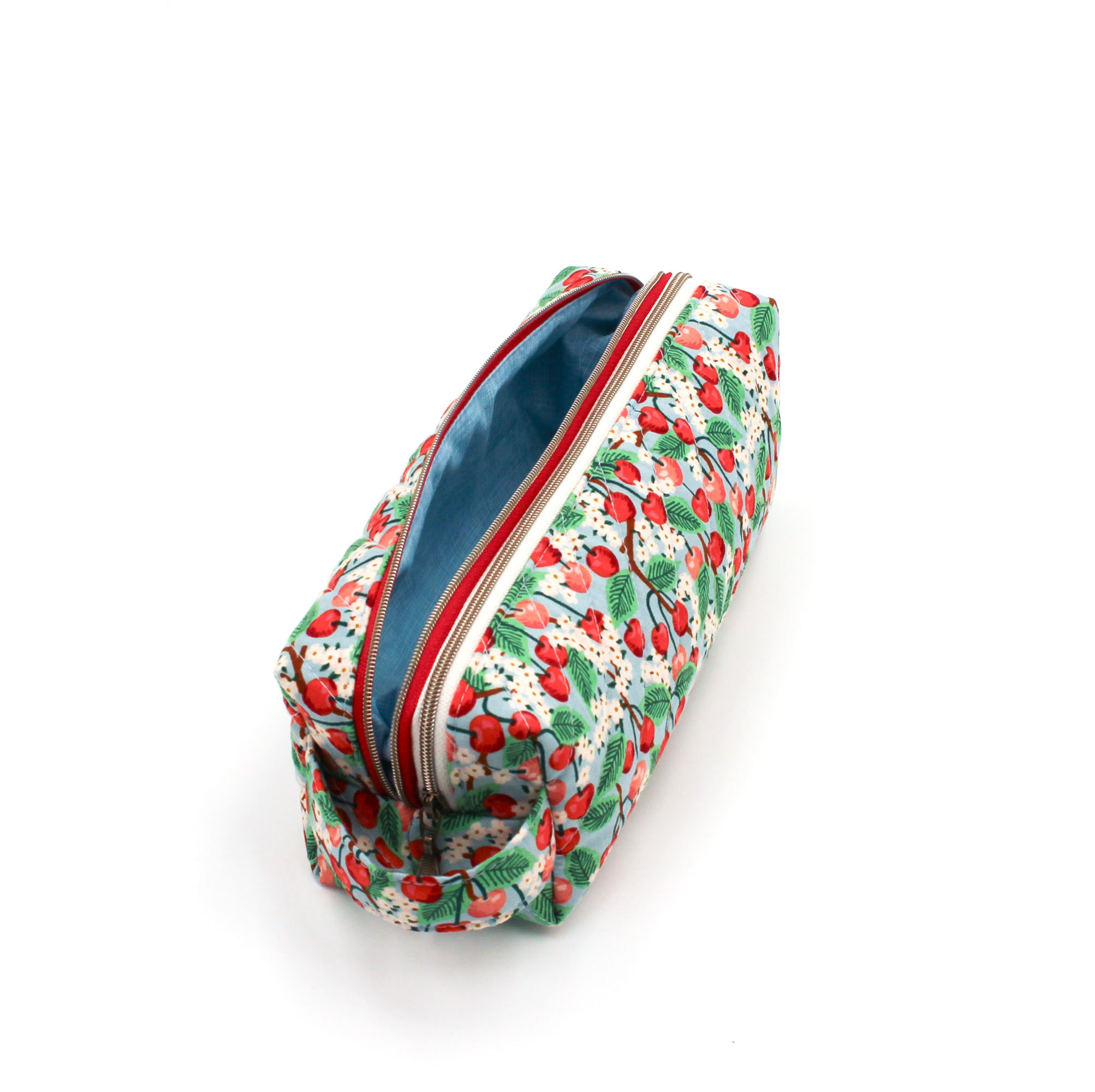 Entdecken Sie unser fertig genähtes, ungefülltes Schlampermäppchen Orchard - Cherry Blossom mit zwei Reißverschlussfächern. Außen und innen aus hochwertigen US Designer- Baumwollwebstoffen. Der Verschluss sind 2 Reißverschlüsse mit metallisierter Kunststoffspirale und Designschiebern. Durch das sorgfältige Quiltung und das Futter mit Soft and Stable erhält das Mäppchen eine angenehme Haptik und einen stabilen Stand.