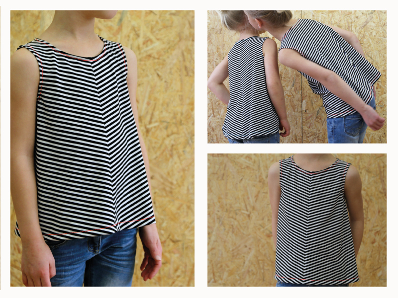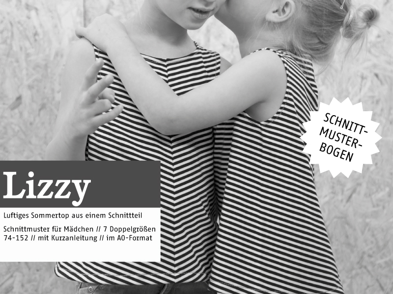 Du wirst es gar nicht glauben, wie schnell LIZZY fertig genäht ist, denn LIZZY besteht nur aus einem einzigen Schnittteil. Jetzt musst Du nur noch entscheiden, ob die Naht vorne oder hinten liegen soll, denn hier entsteht der Hingucker! Das Stoffmuster läuft an der Naht diagonal zu, so entsteht ein toller V-Effekt, der besonders bei Streifenstoffen gut zur Geltung kommt. Aber auch uni oder gemustert sieht LIZZY einfach lässig und sommerlich aus.