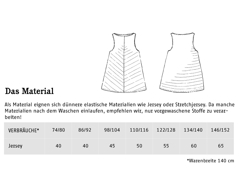 Materialempfehlung: dünnere elastische Materialien wie Jersey oder Stretchjersey.