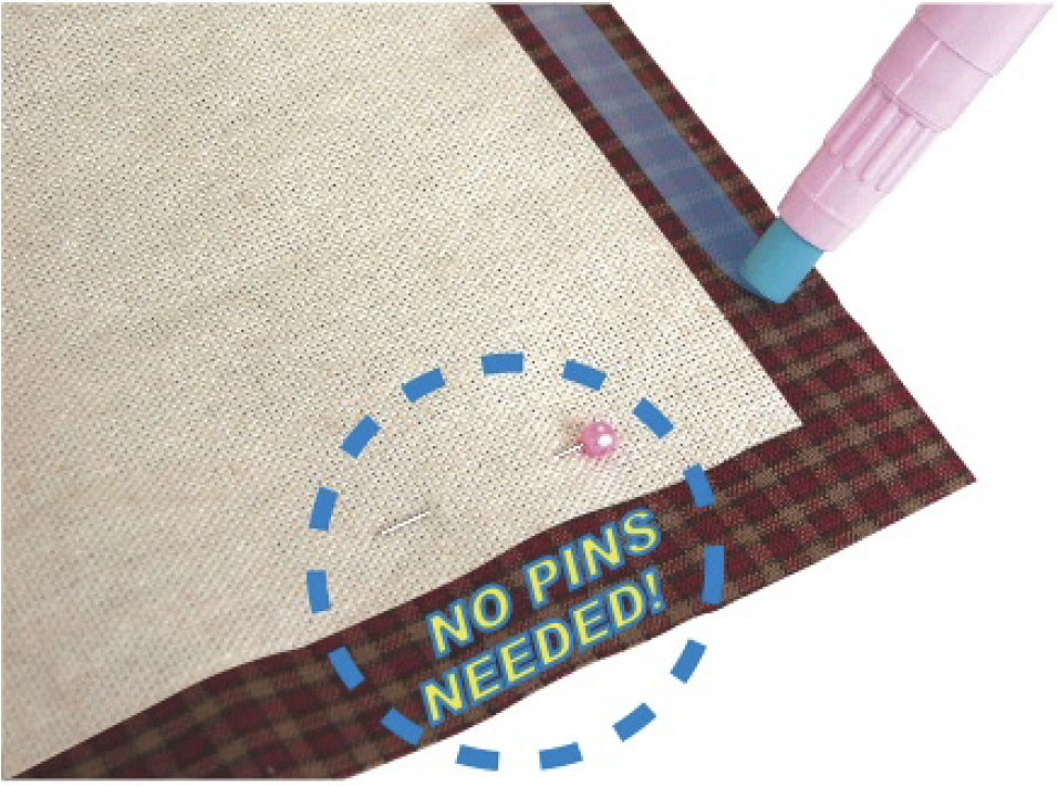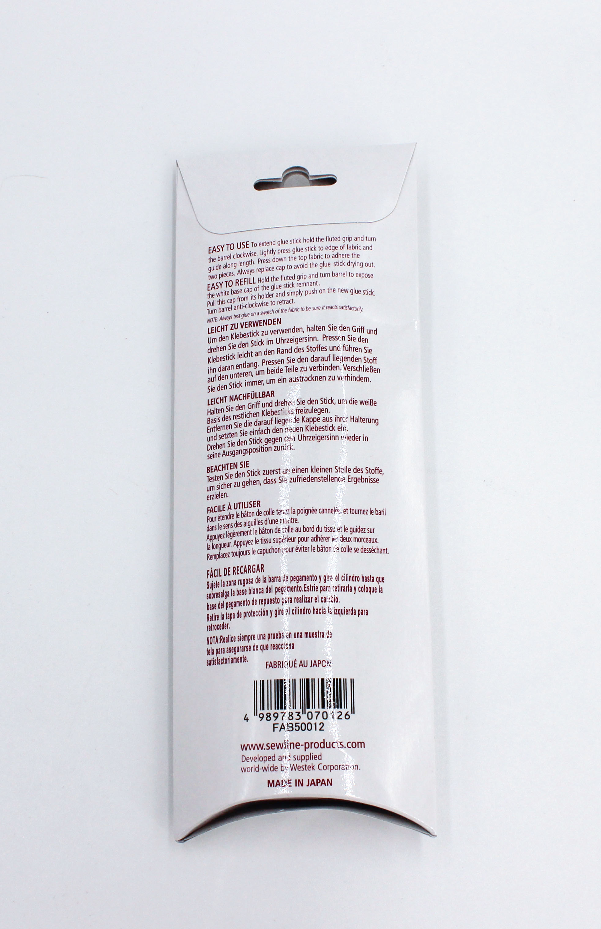 Die Klebepatrone lässt sich ganz einfach durch Drehen, wie bei einem Lippenstift, heraus bewegen. Fahren Sie einfach über die zu verklebenden Stellen und pressen die Teile zusammen. Nun können die Teile vernäht werden. Der Kleber ist nach dem Trocknen farblos und löst sich beim Waschen auf. Der Stift ist nachfüllbar mit separat erhältlichen Klebepatronen, wobei bereits eine Ersatzpatrone im Lieferumfang enthalten ist.