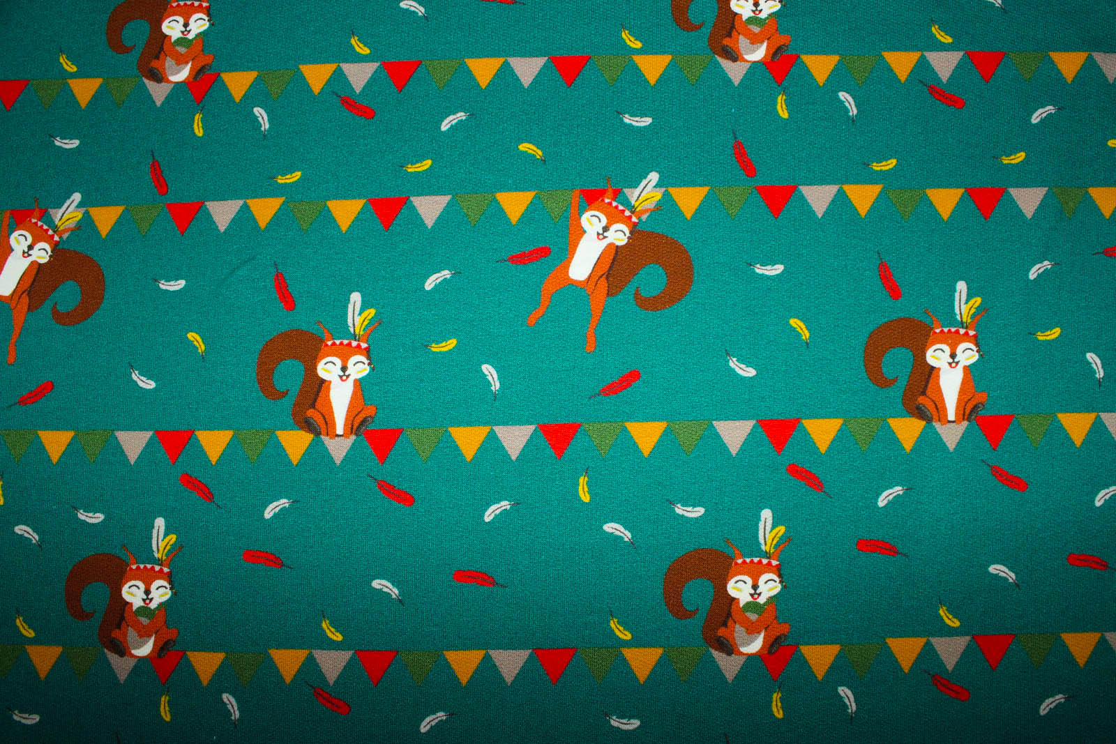 Hier biete ich Euch einen leichten traumhaften Sommersweat (French Terry) in grün mit niedlichen Eichhörnchen, aus dem Hause Hilco an.
