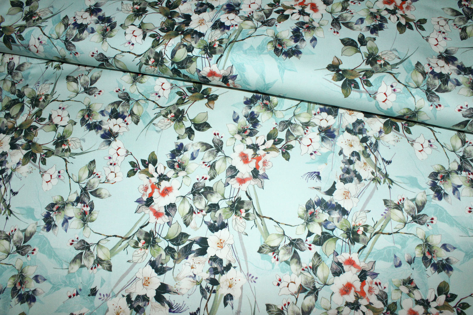 Außergewöhnlich schöner und feinfädiger Stretch-Baumwollstoff (satiniert) "Cucuta" in pastellblau mit Blütenzweigen aus dem Hause Hilco. Super geeignet um sich tolle Kleider, Röcke, Blazer, Jacken o.ä. daraus zu nähen. Die Stoffe auf dem vierten Foto dienen den Insipration. Diese gibt es, solange verfügbar auch hier bei uns.