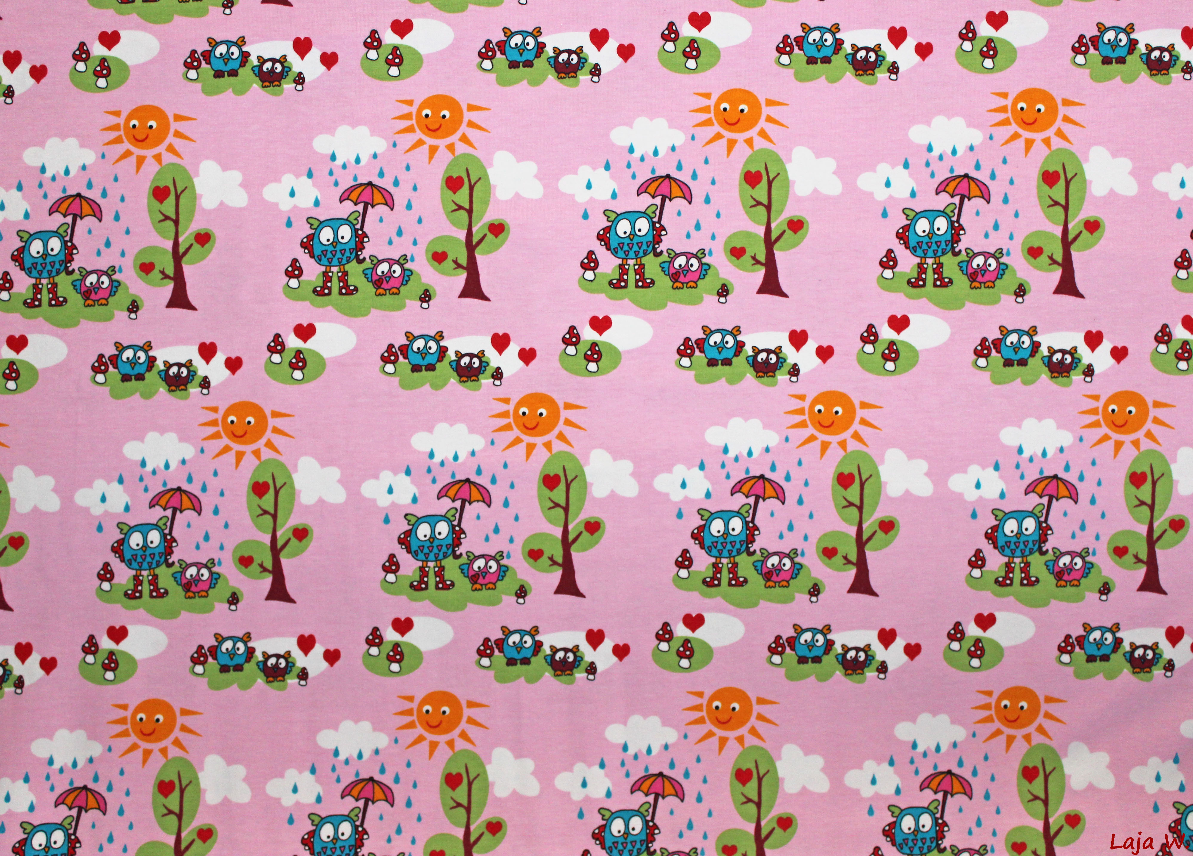 usw.Hier biete ich Euch einen absolut traumhaften Stretch-Jersey mit süßen Eulen in der Farbe rosa nach dem Design von Janeas World an.