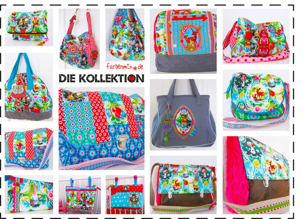 Vom Geldbeutel bis zur Reisetasche XXL warten elf neue Schnittmuster auf Dich! Damit lassen sich unzählige herrlich einzigartige Taschenkombinationen nähen. HIER wird jede Tasche ganz ausführlich mit unzähligen Designbeispielen vorgestellt. Weiterhin findest Du dort zu jeder Tasche den Schwierigkeitsgrad und eine Materialliste, die Du Dir ausdrucken und beim nächsten Besuch im Stoffladen mitnehmen kannst.