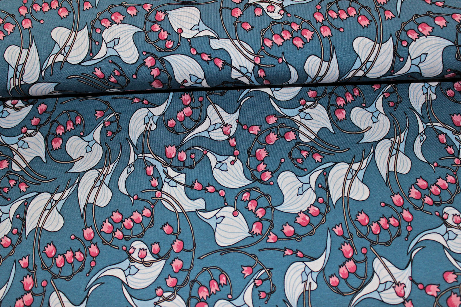 usw.Sehr schöner Viskosejersey Blüten und rosa Maiglöckchen.