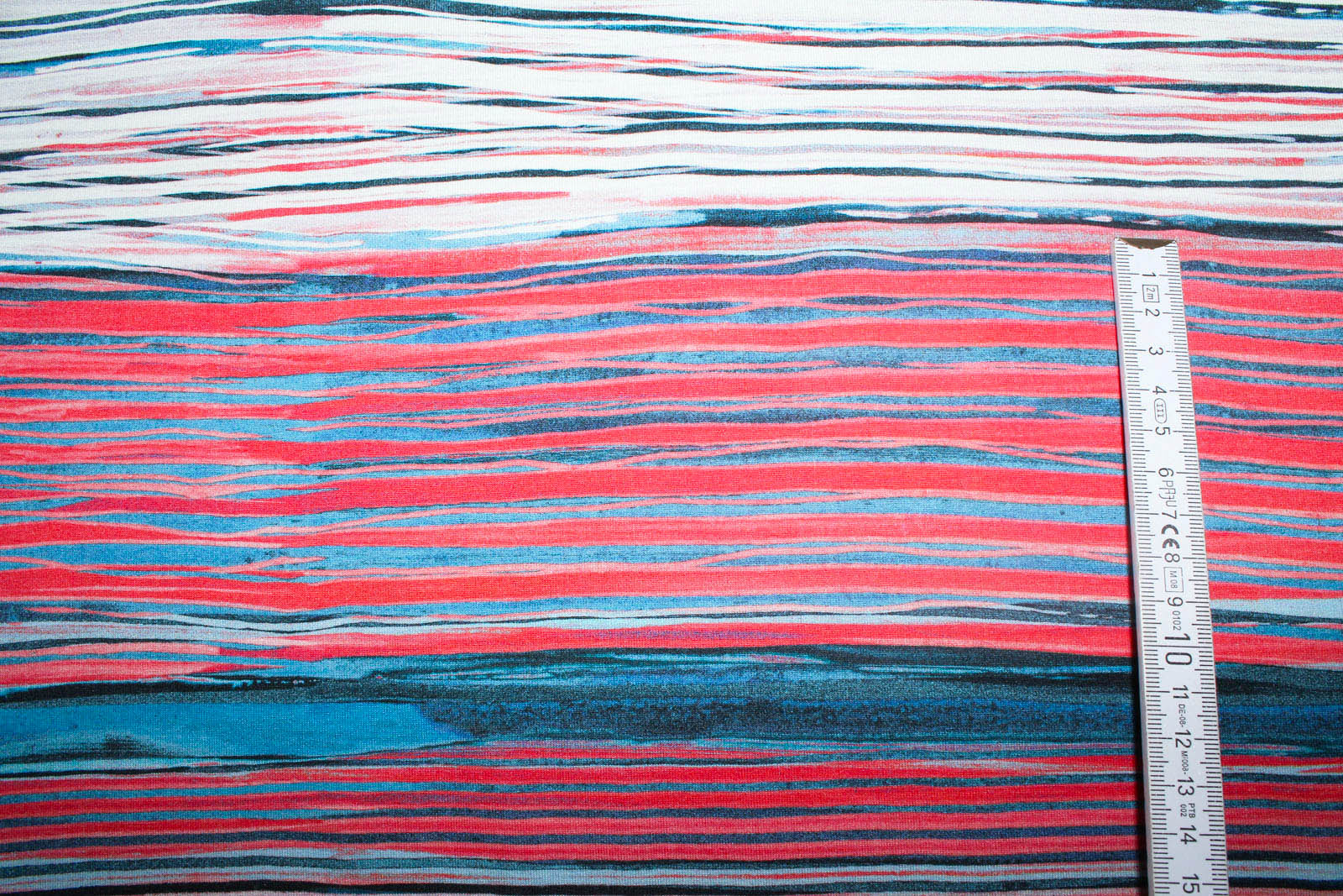Hier biete ich Euch einen hochwertigen und weichfallenden Viskosejersey mit unregelmäßigen Streifen und sehr langgezogenem Farbverlauf der Firma Hilco an. Dieser Jersey eignet sich sowohl für feine Shirts, Kleider u.ä. Wir haben hier eine größere Mindestbestellmenge eingetellt, da der Abstand zwischen mit den beiden roten Farbverläufen knapp 80 cm beträgt und der Stoff mit diesem roten Farbtupfer einfach schöner wirkt. (siehe Foto 3)