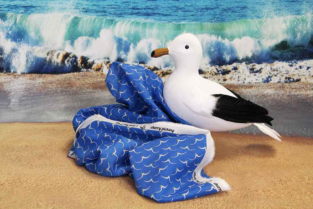 Ein ganz leichter halbtransparenter Voile mit Möwen nach dem Design von Cherry Picking. Super geeignet für ganz leichte Sommerblusen (über einem Top o.ä.) oder für Schlauchschals und leichte flatternde Tücher.