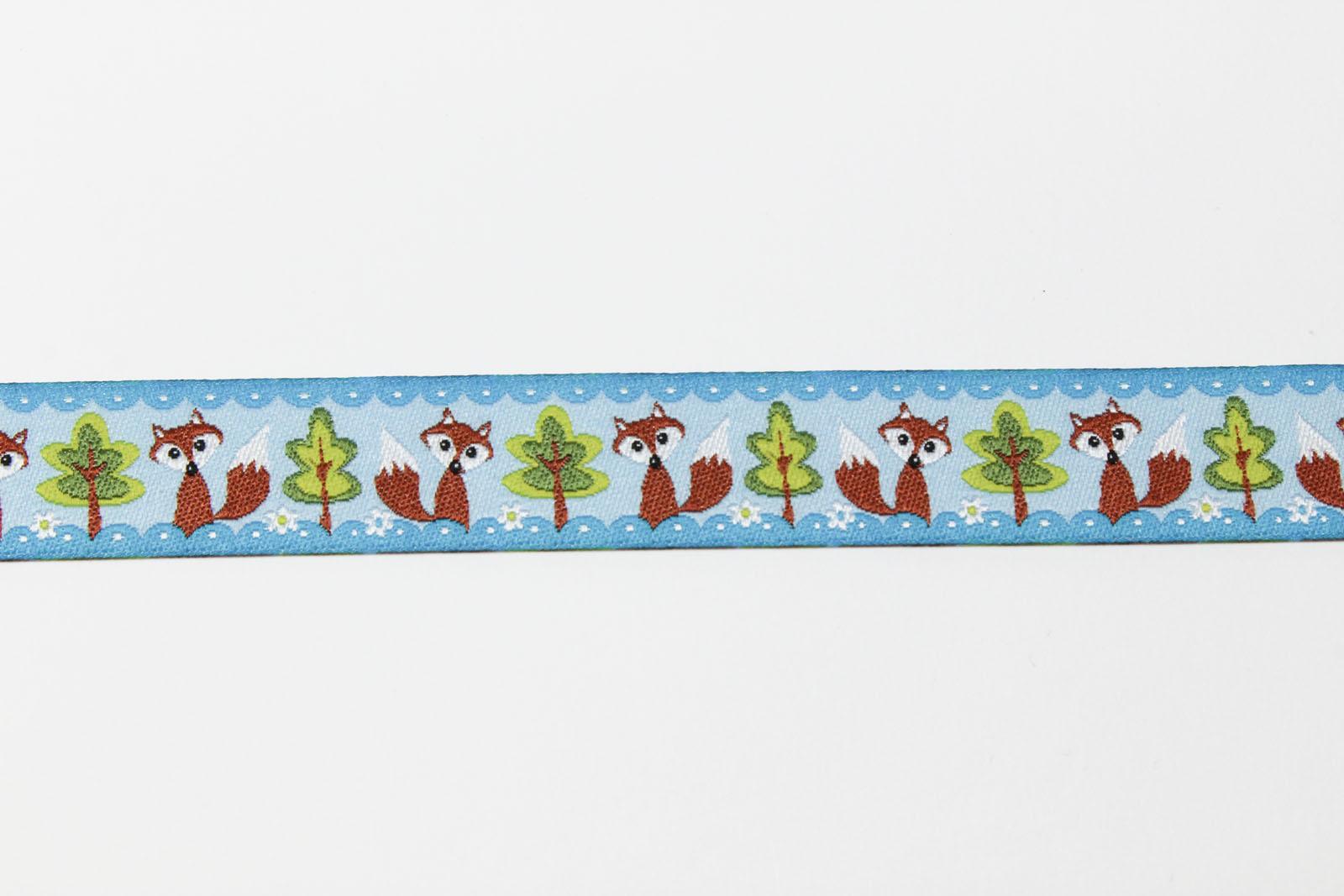 Hier biete ich euch ein wunderschönes und qualitativ hochwertiges Webband mit süßen Füchsen an.
