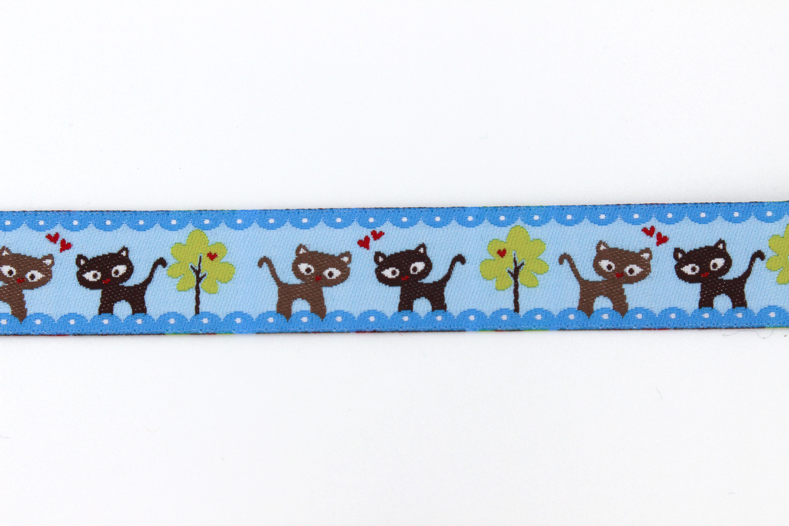 Hier biete ich euch ein wunderschönes und qualitativ hochwertiges Webband mit süßen Kätzchen an.
