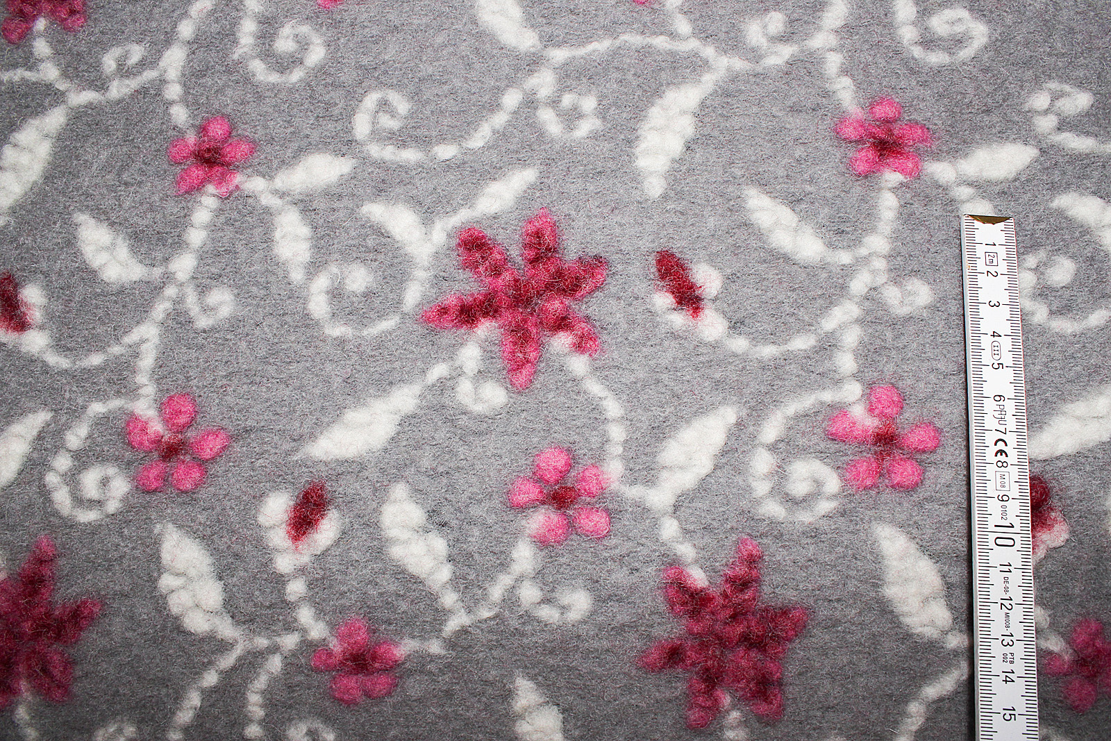 Hochwertiger Wollwalk "Cyclamen" aus dem Hause Hilco mit plastischen Blumenranken. Ein echter Hingucker. Super geeignet für Jacken, Mäntel, Westen, Überzieh-Pullover, Schals, Mützen, Stulpen uvm.